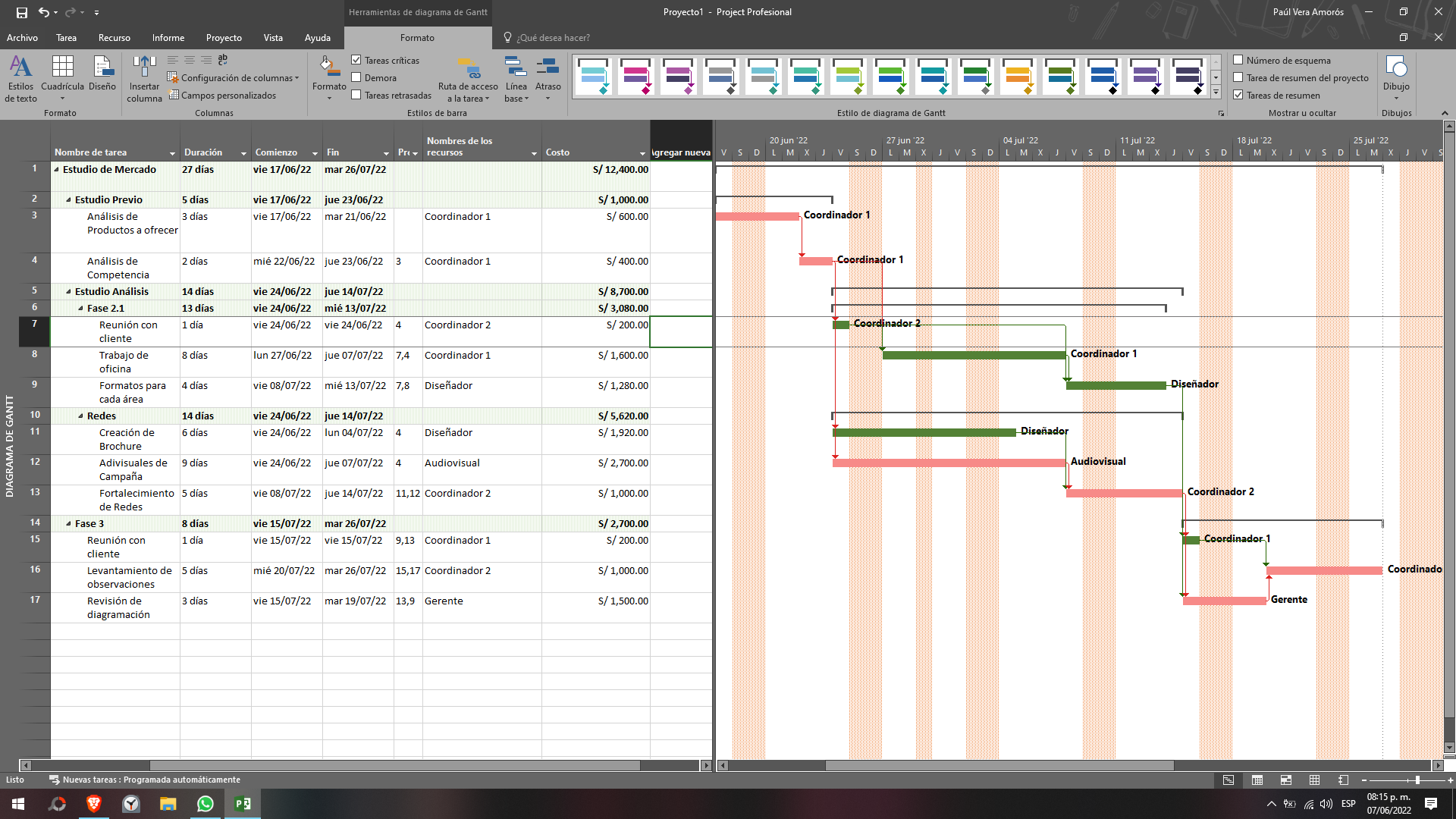 4. Utilicé el diagrama de gant en Ms Project para el proyecto de uno de mis clientes.