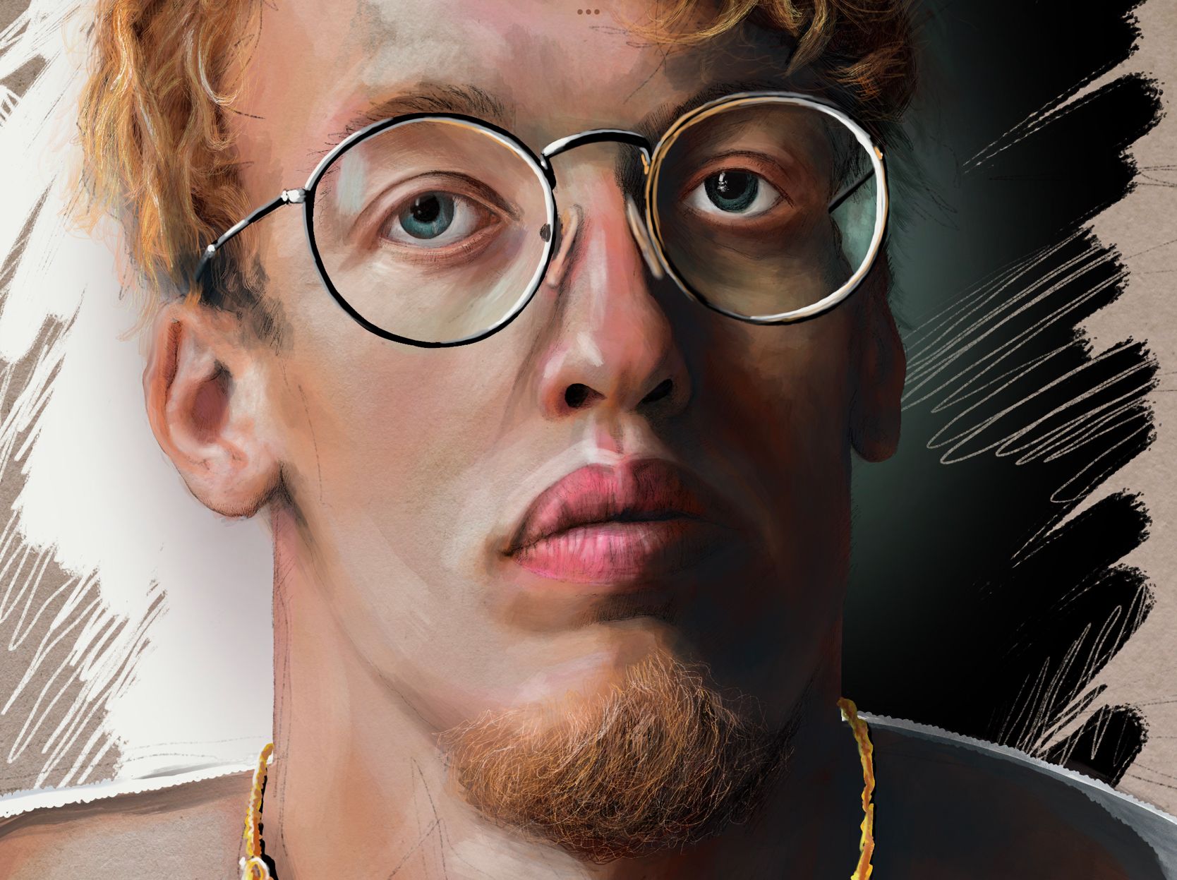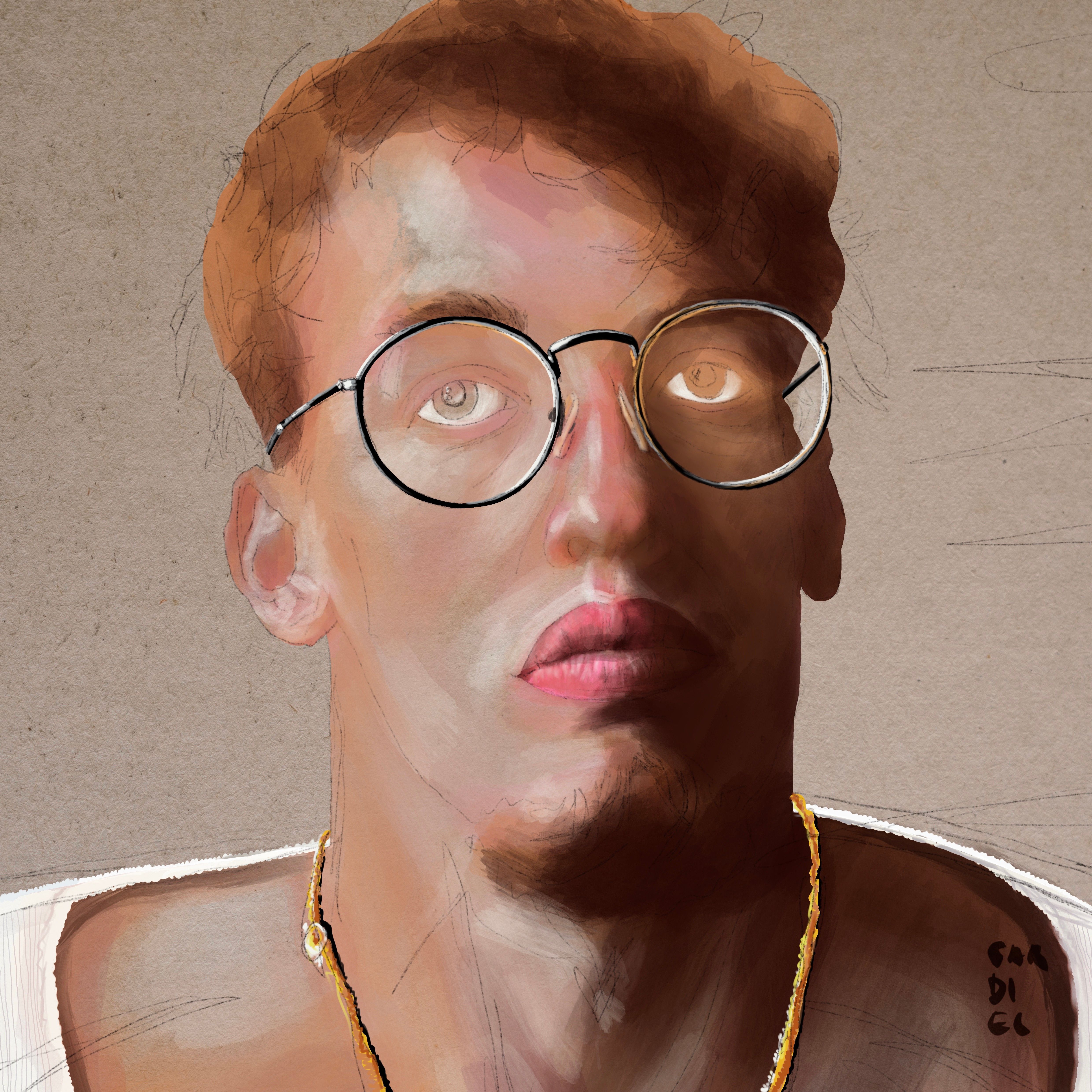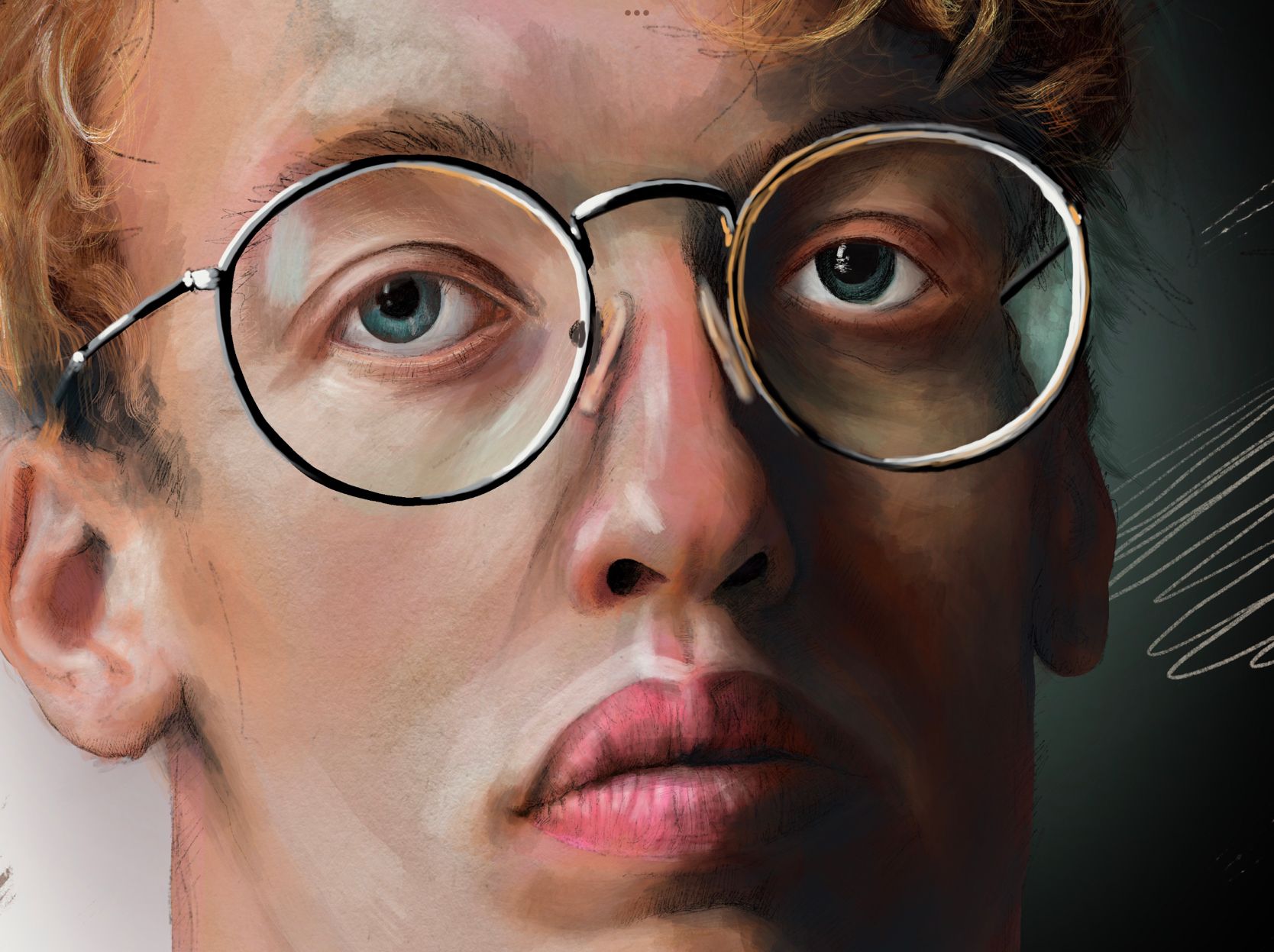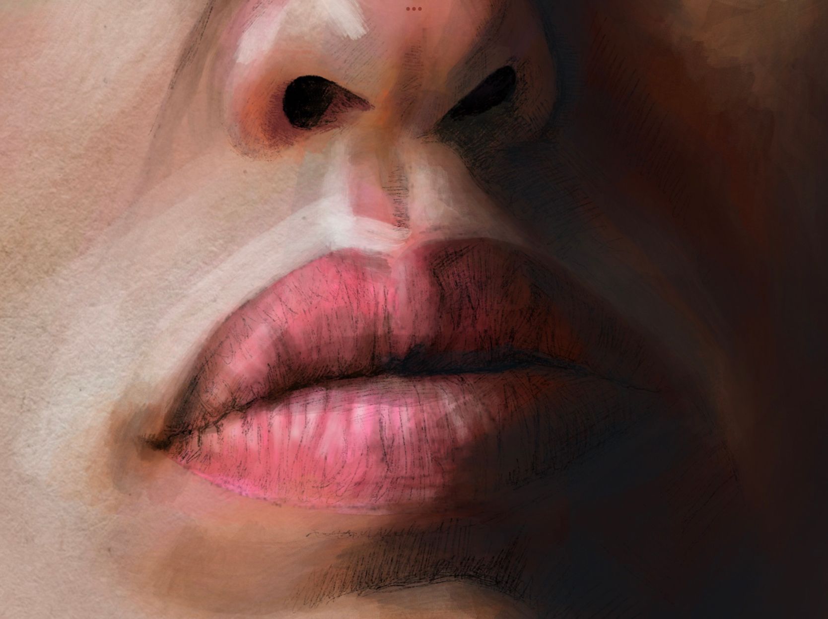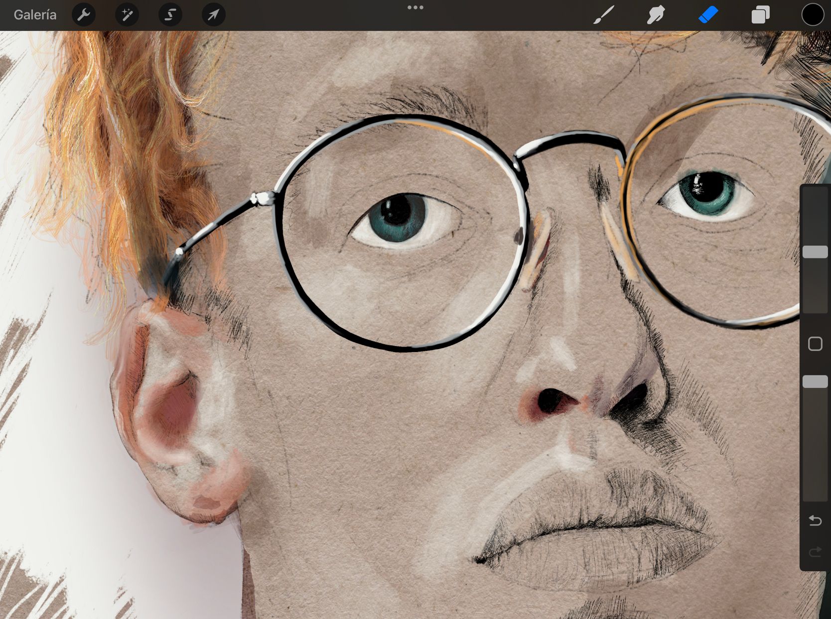 Capa sin tonos ni volumen, sólo con la textura de papel.Detalle de los labios.Detalle del ojo.Zoom 2.Zoom 1.Base de color sin mucha definición.Detalle del ojo sin meter mucho color ni textura.Personaje con los ojos cerrados.Personaje con los ojos abiertos.