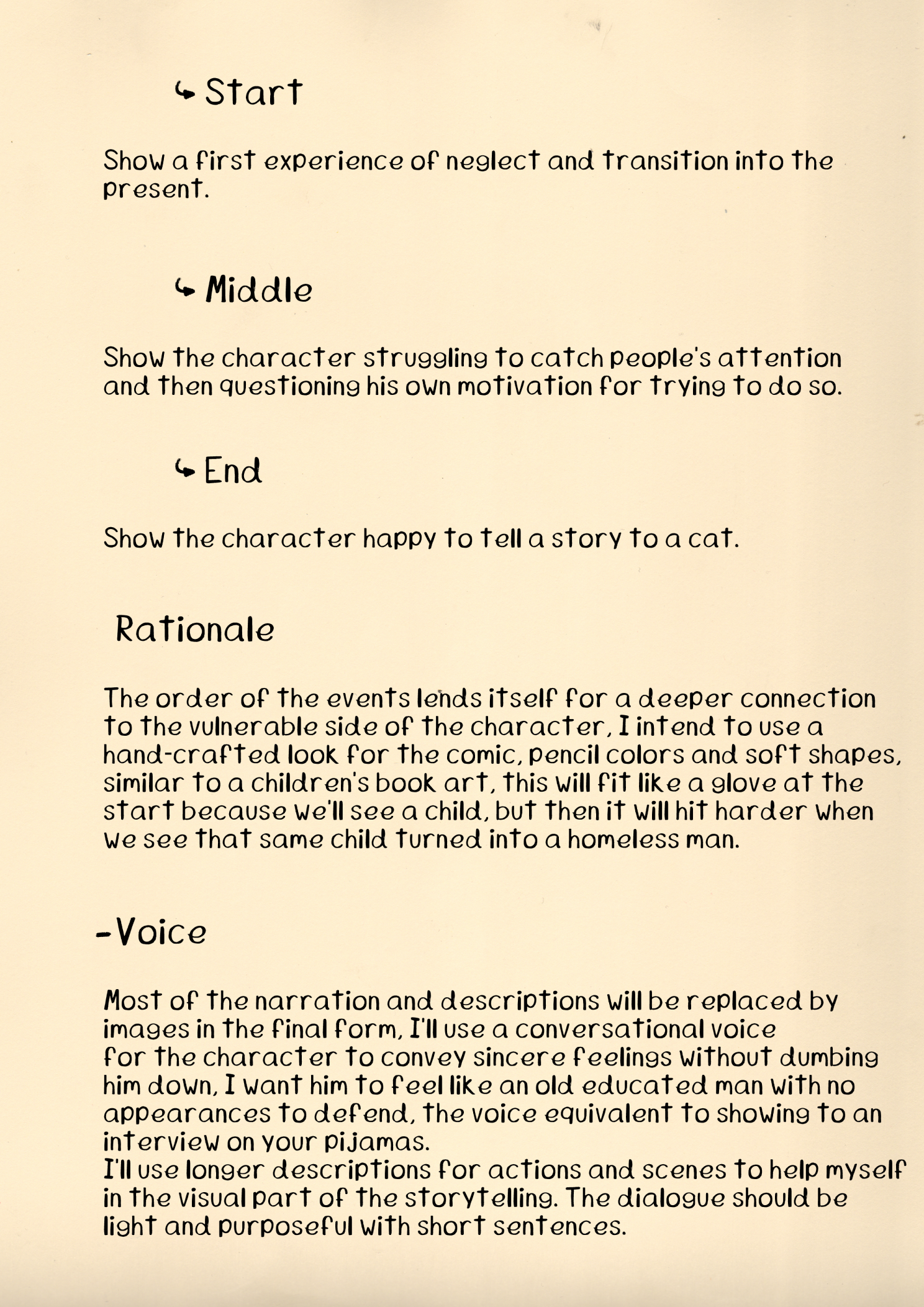 BINE, dar acestea fiind spuse, s-ar putea să existe și alte nuanțe la care nu mă gândesc, având în vedere formatul pe care îl vei folosi. Ți-aș recomanda mai multe cursuri Domestika! S-ar putea să-ți ofere o perspectivă și mai bună. Vezi: https://www.domestika.org/en/courses/4171-script-writing-for-comics-explore-visual-storytelling