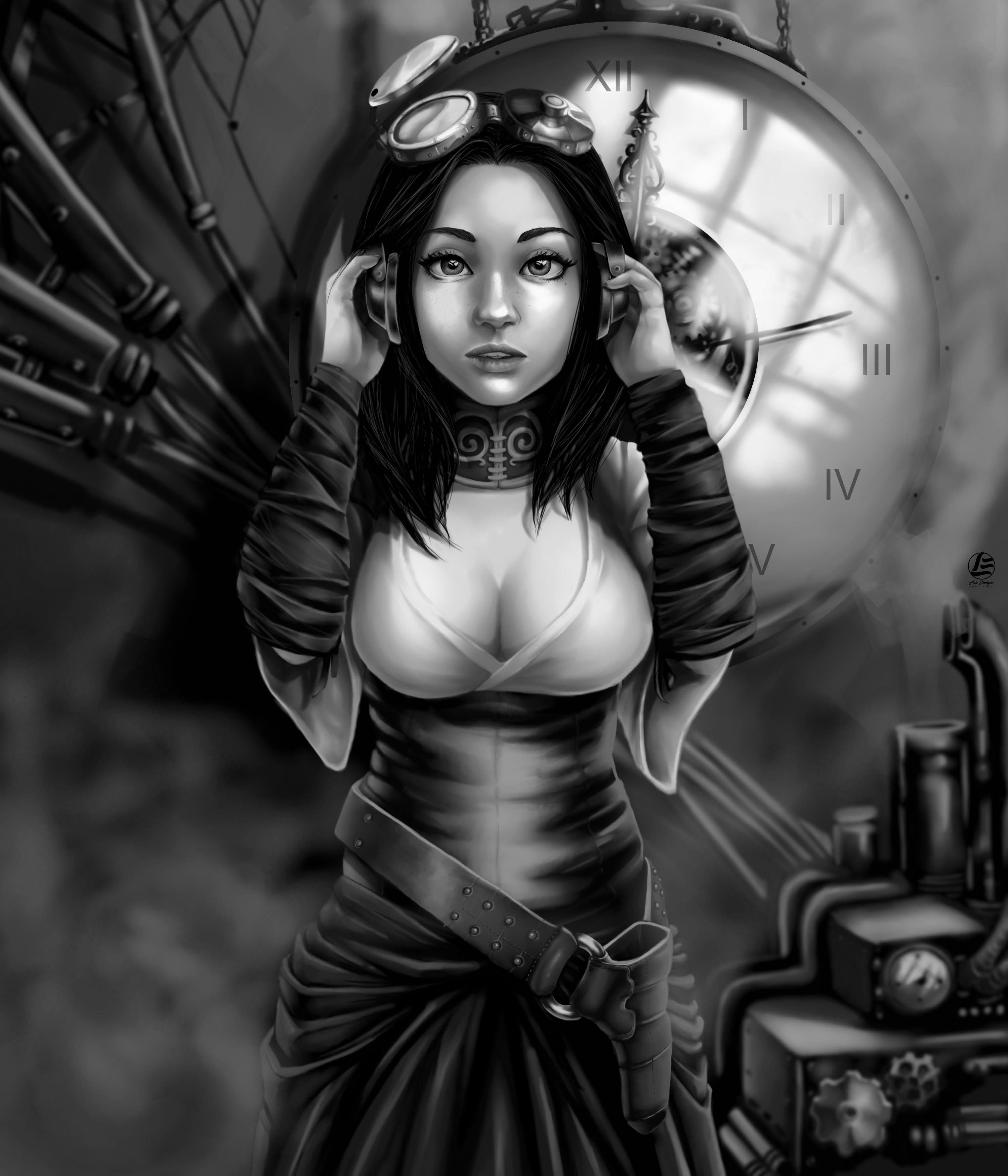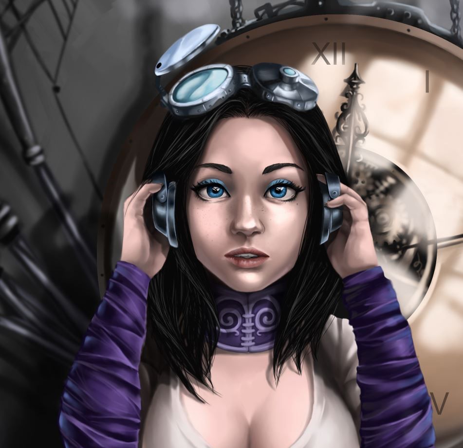 Ilustración con técnica digital basado en el movimiento Steampunk, de las novelas gráficas y el estilo literario de la época victoriana.
