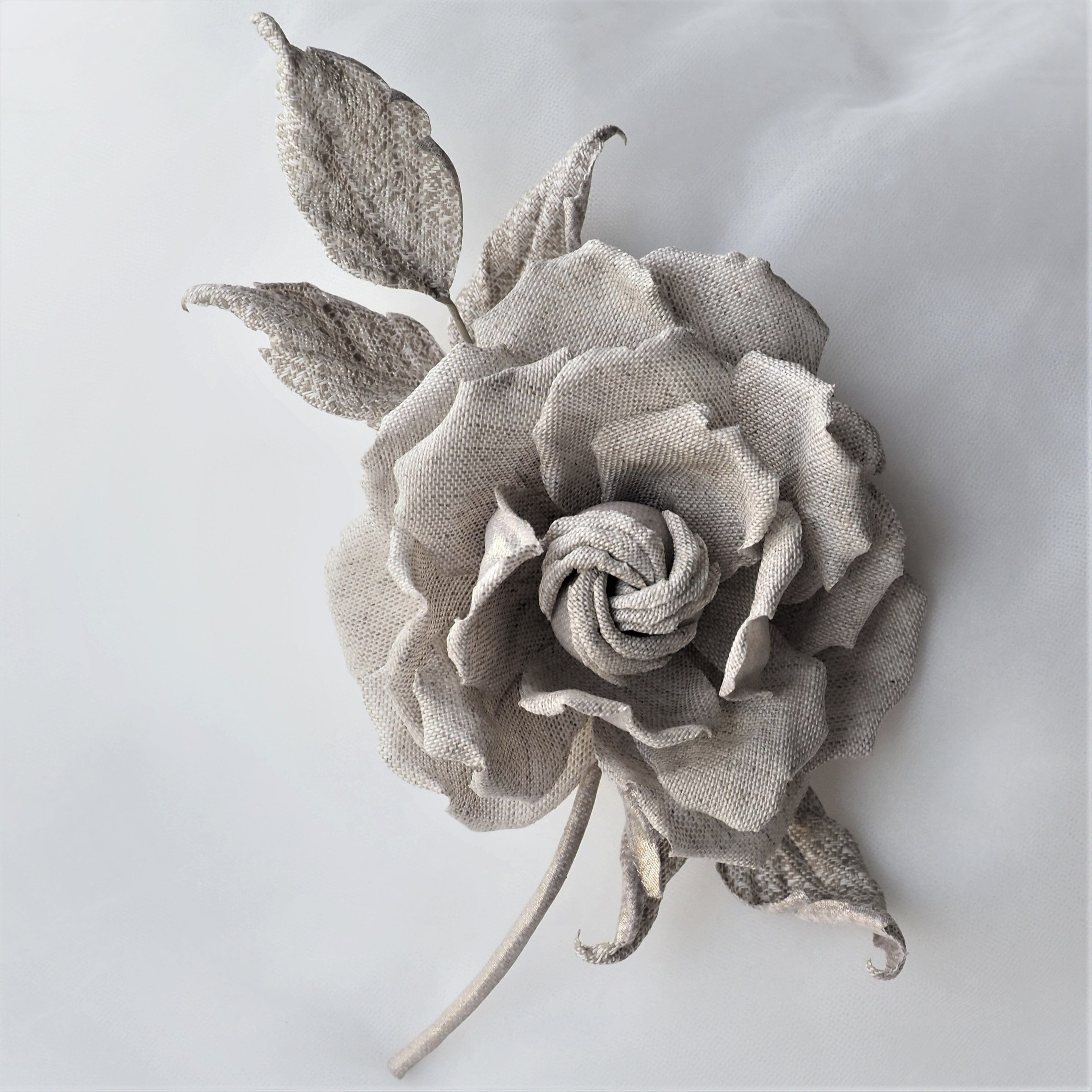 Undyed Linen Rose Brooch