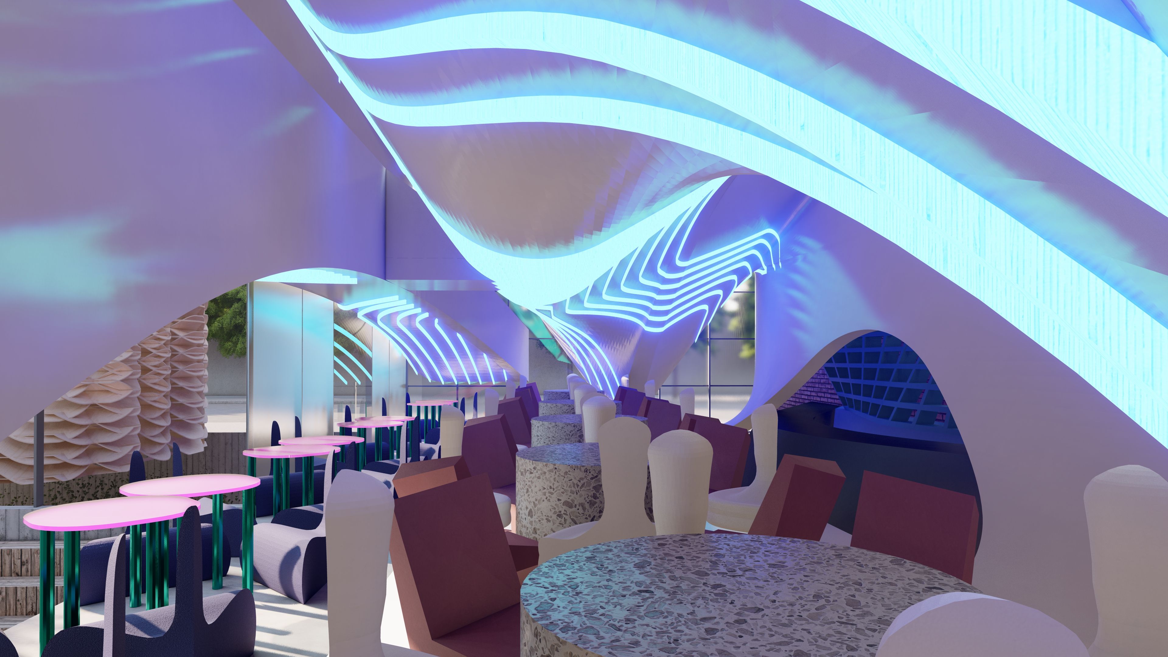 Zona futuristă/hipermodernă este generată din ideea de a genera o singură suprafață