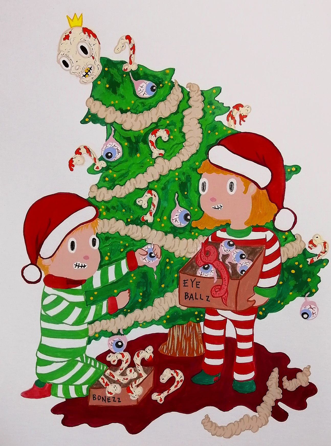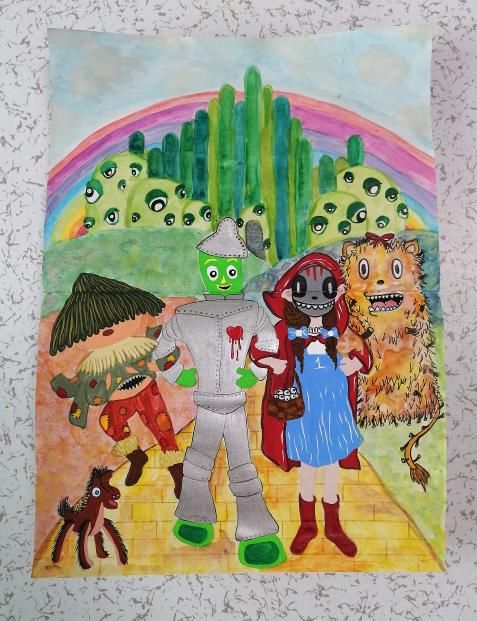 Mulțumesc că ai împărtășit aici munca ta, inclusiv un desen ca o operă de artă complet executată. Apreciez umorul care surprinde modul amuzant în care copiii (și adulții) văd lumea și cum o sărbătoresc, chiar dacă se face cu lucruri „scârboase” precum ochi și măruntaie. Pot auzi râsetele. Mulțumesc că ai urmat cursul.