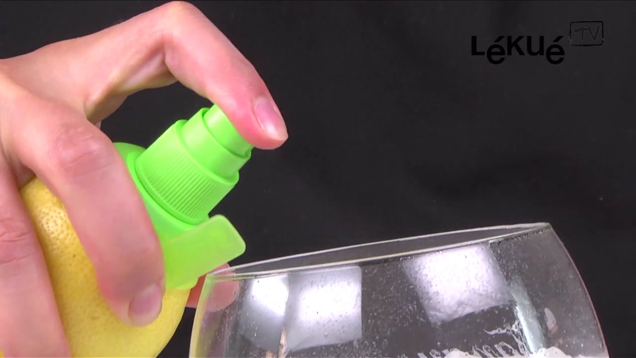 Citrus Spray for Lékué, is a juicer that allows to spray the juice directly from the citric fruit, turning the fruit into its own natural container.
