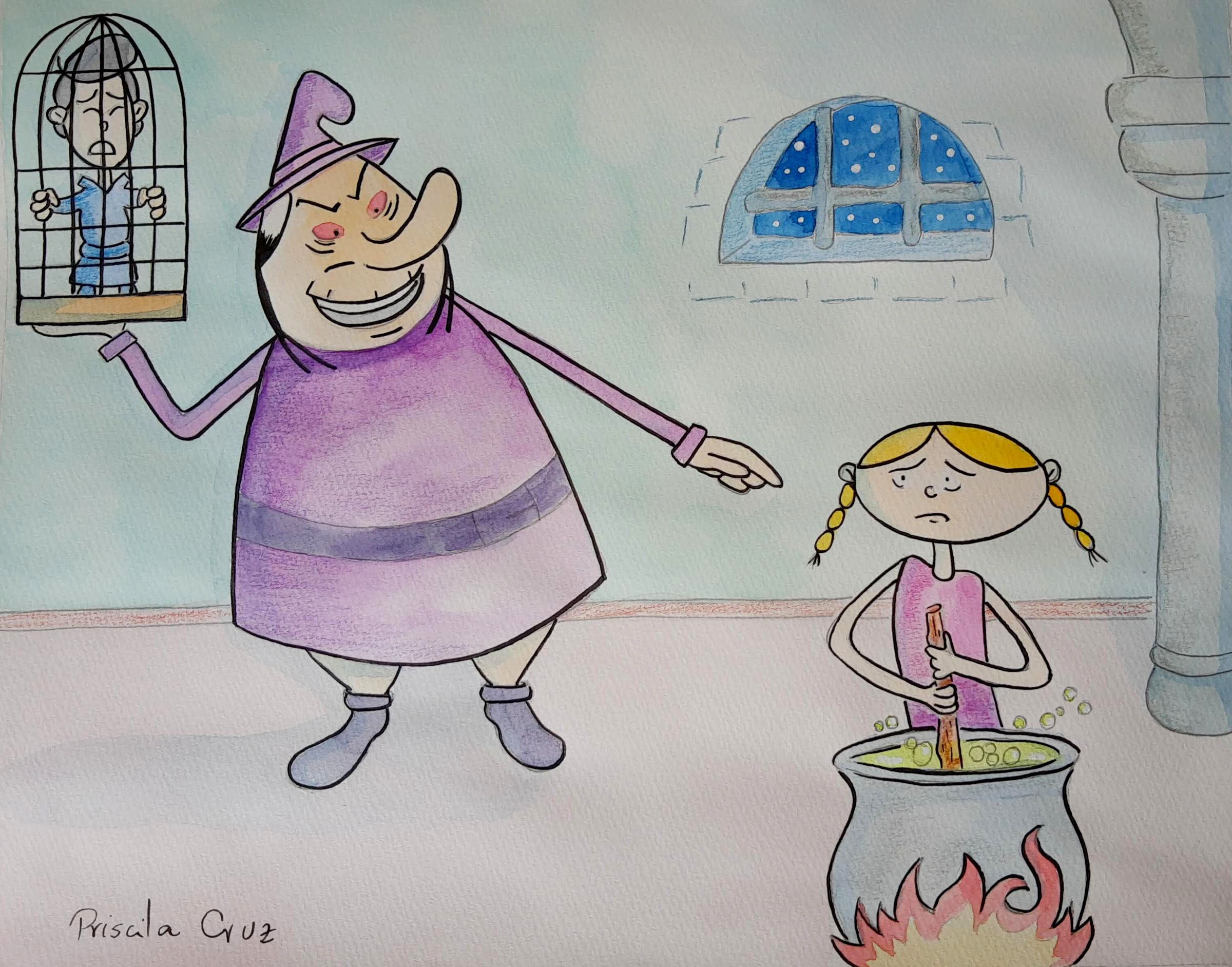 Hansel și Gretel sunt portretizați cu umor. Îmi plac.