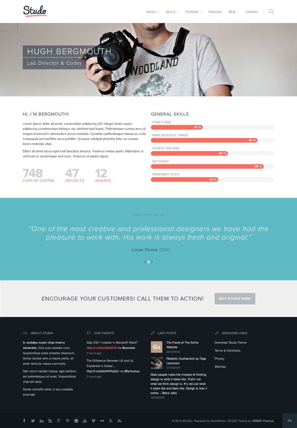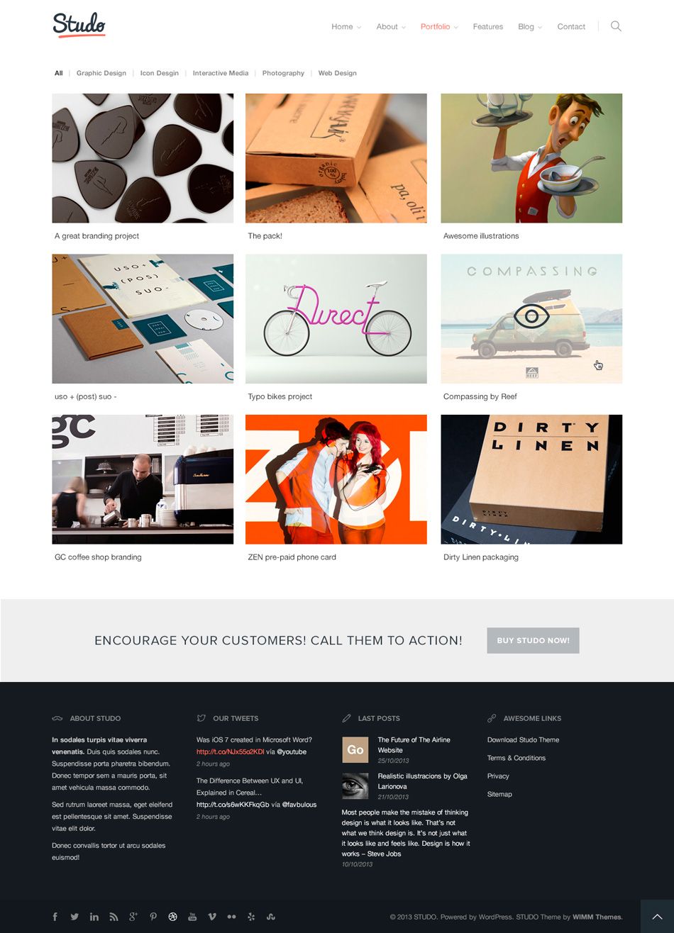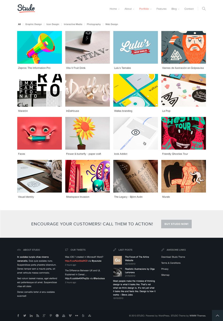 Desarrollo del tema para WordPress Studo, orientado a estudios creativos y de diseño.