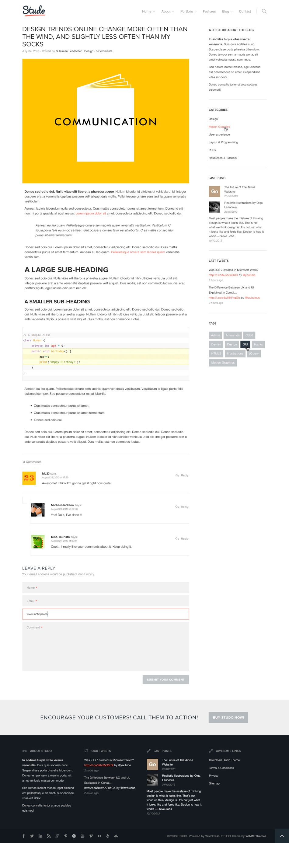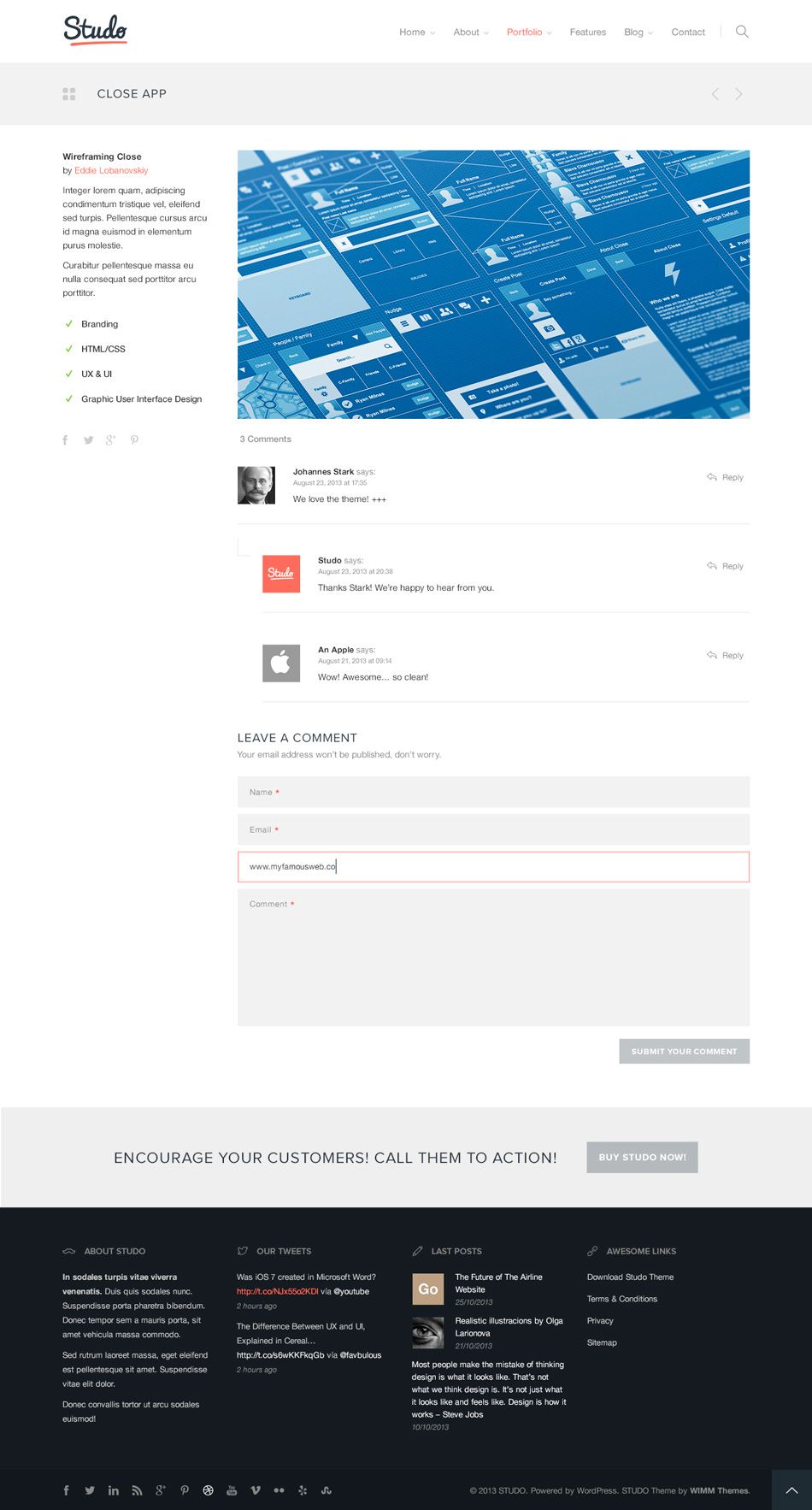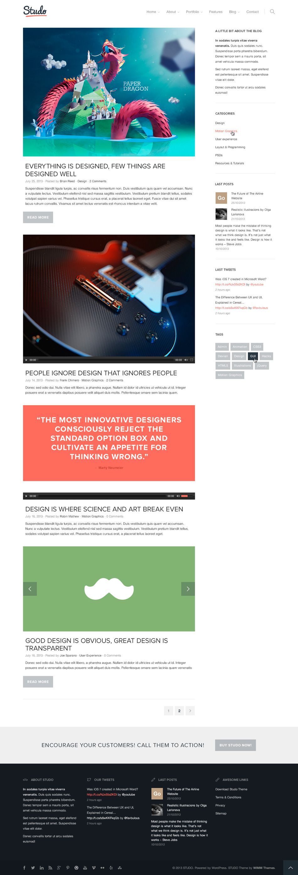 Desarrollo del tema para WordPress Studo, orientado a estudios creativos y de diseño.