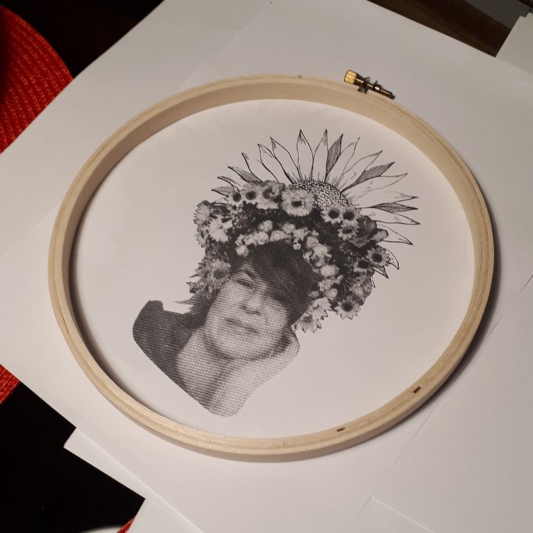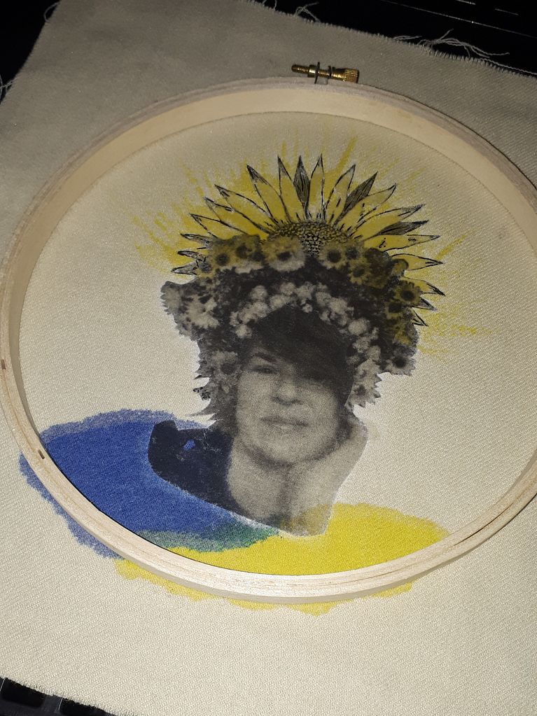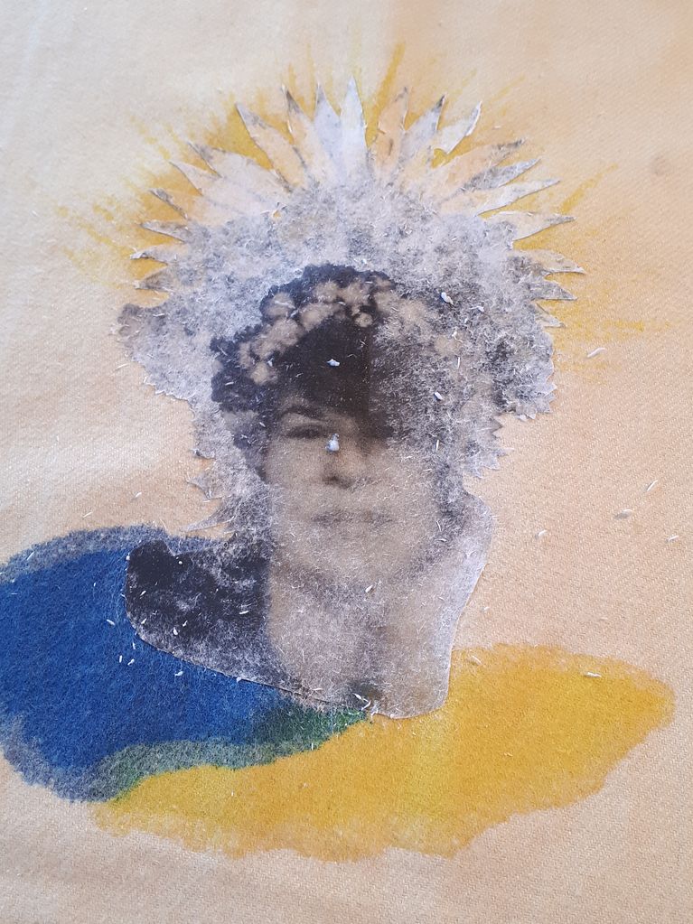Une œuvre créée suivant les notions du cours "Photo embroidery on fabric" par Studio Variopinto.
