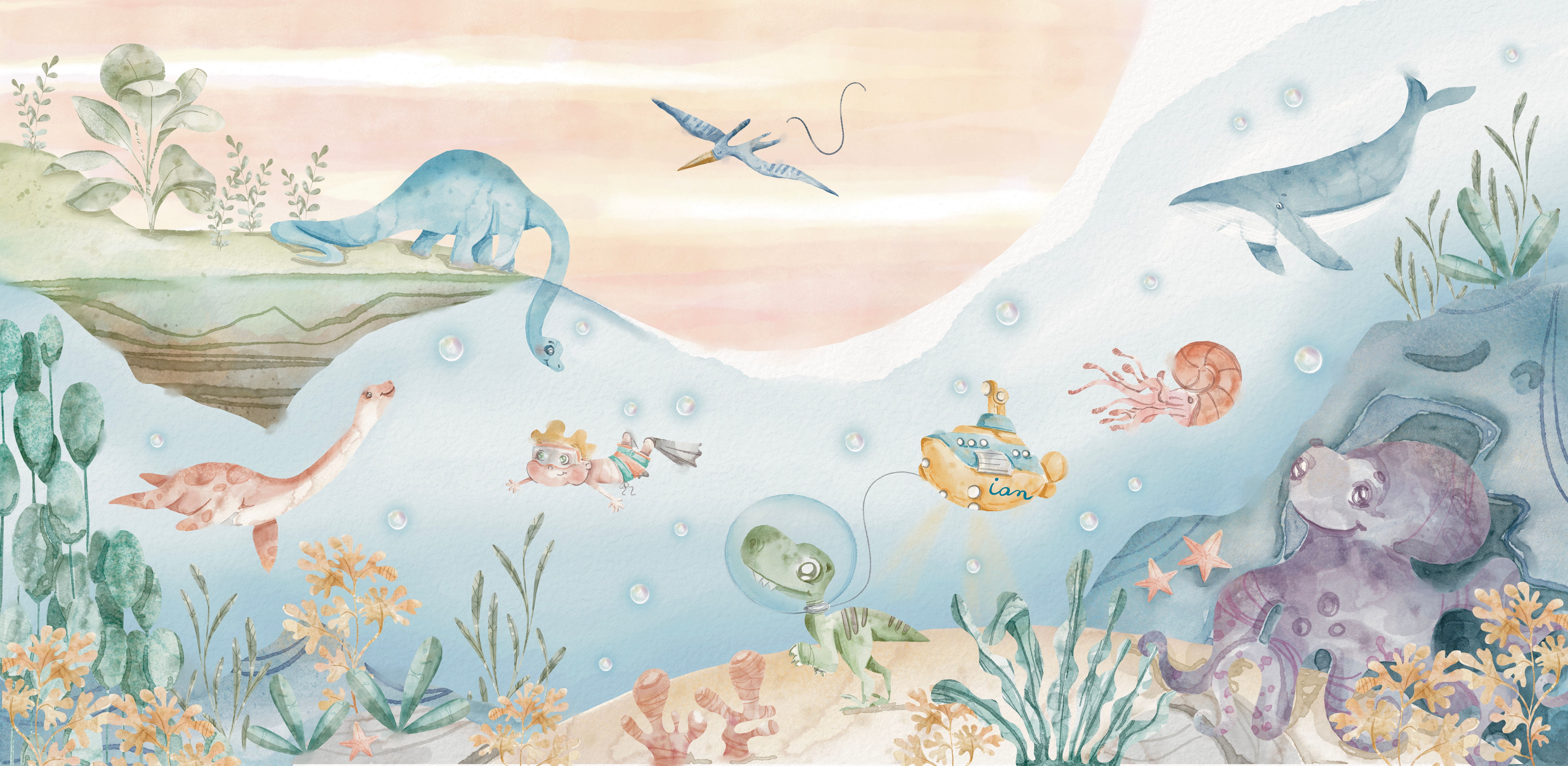 Papel de parede - Dinossauros fundo do mar