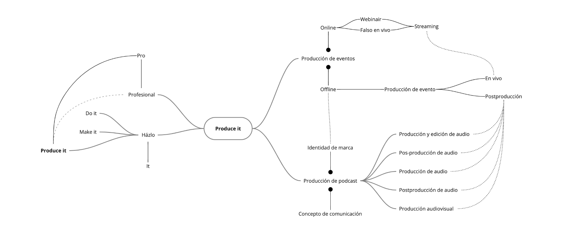 /Challenge: Create a name and graphic identity concept that supports the different business units that the brand has; podcast production, production of live or streaming events, creation of scenarios for interviews and private webinars.