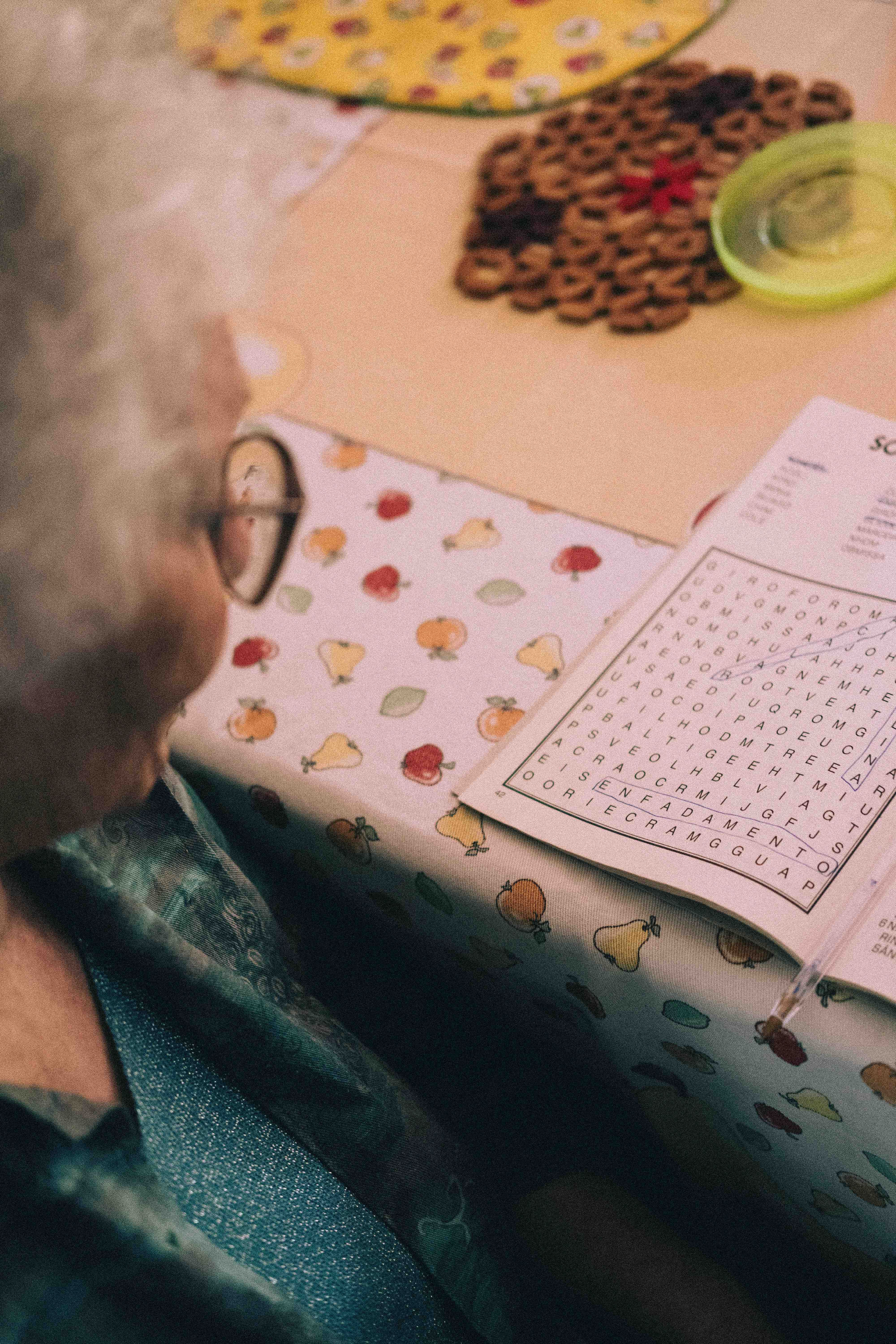 Eva trying to find some words in words soup.