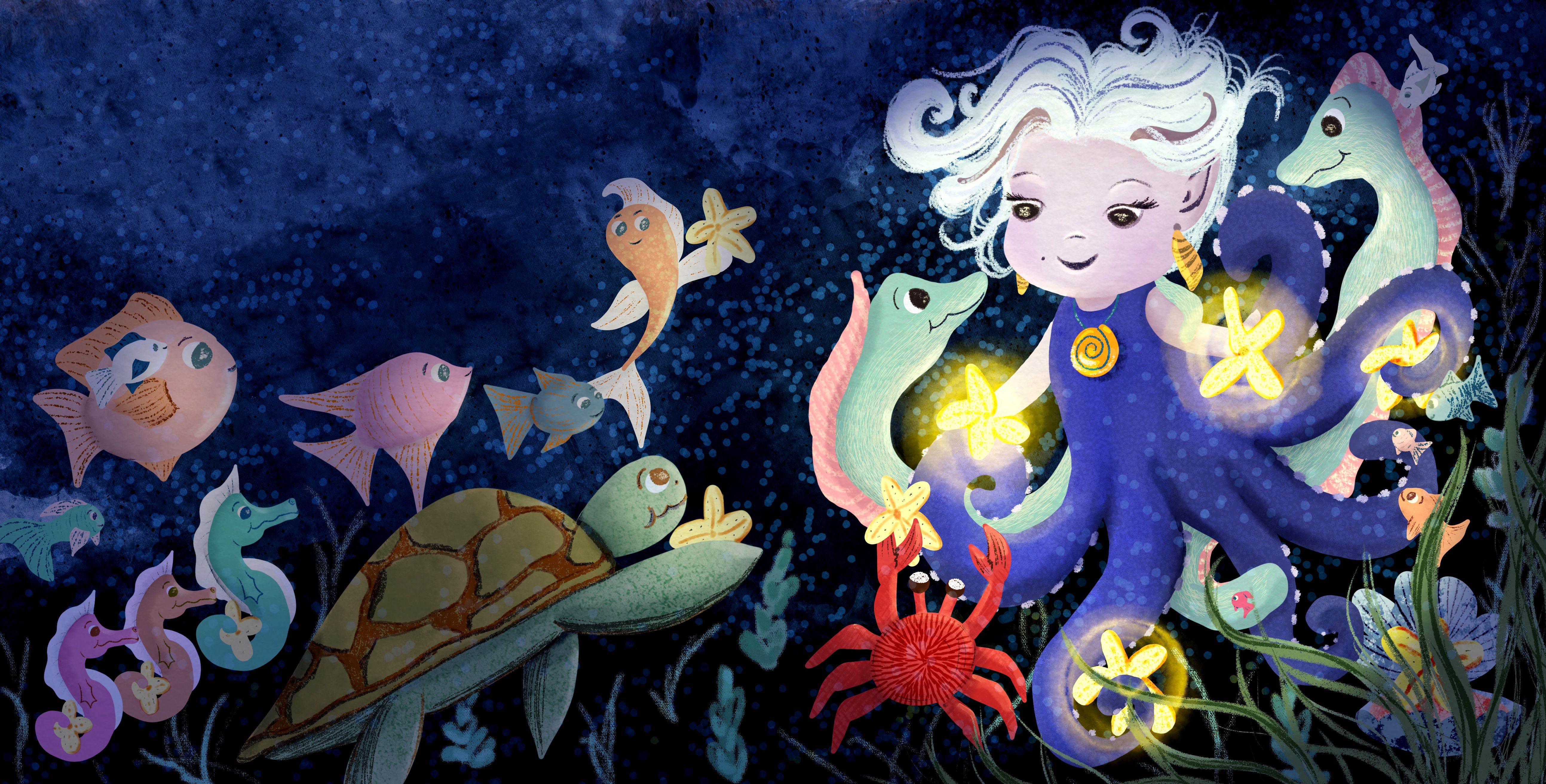 Ursula from the Disney version of the Little Mermaid has always been my favorite villain. I wanted to re-imagine her as sweet.