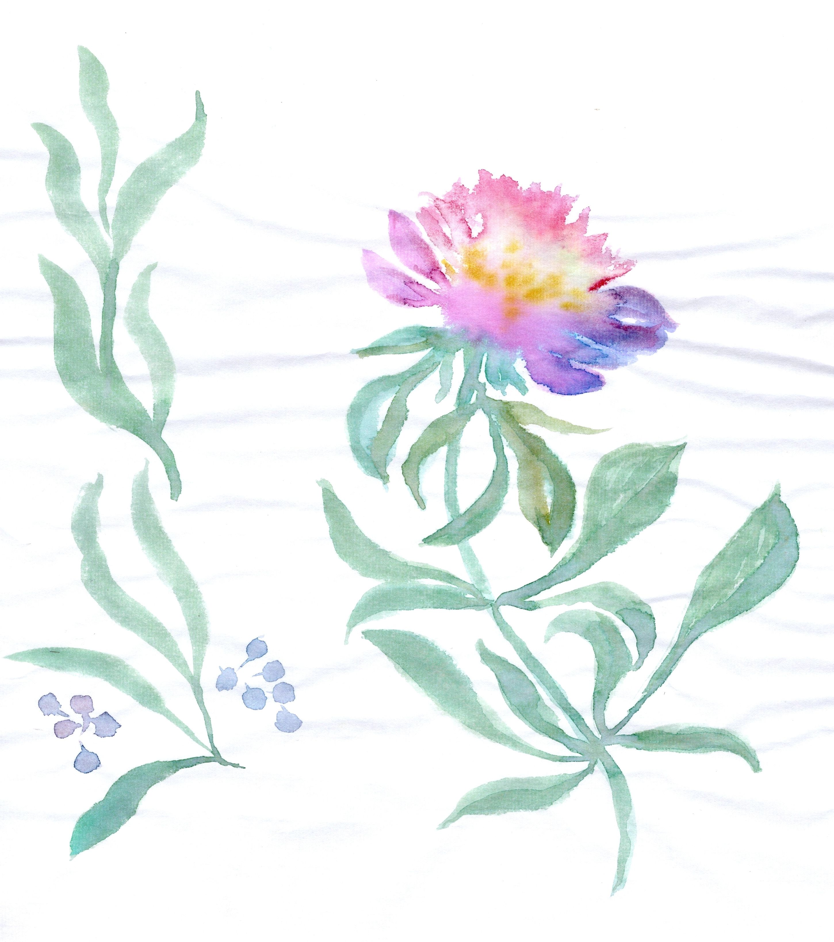 Because I tend to overwork my watercolours, I chose to work on rice paper which gives a more spontaneous feel. However it is more difficult to clean up on the computer as the paper bleeds. In the end I arrived and I am happy with the results. I look forward to doing Lola's watercolour course on her website!