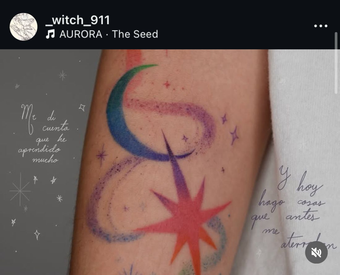 Es este tatuaje de una luna y una estrella con degradados