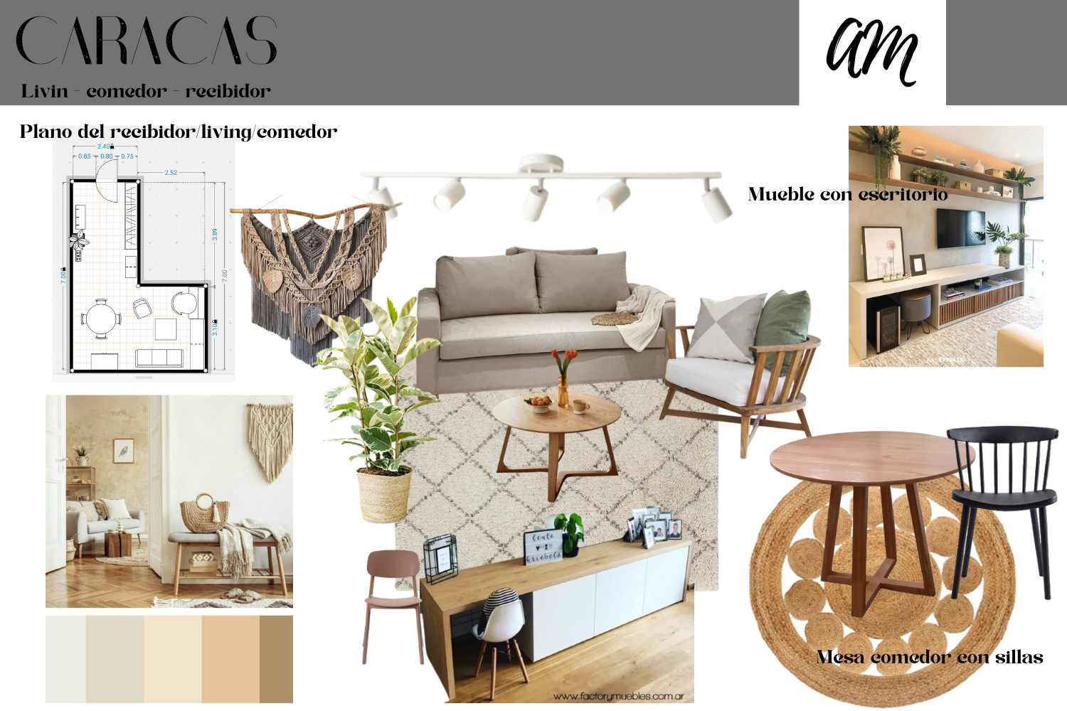 En este proyecto quise combinar el estilo étnico para darle calidez a un sector del departamento, la combinación de texturas, verde y madera junto con el blanco para ampliar los ambientes dan la sensación de calidez que quiero transmitir en mi hogar. En cuanto al mueble principal del living, combine escritorio para poder hacerlo funcional y dejar más espacio para generar otro sector de lectura para mis, hijas. Es fundamental que todos los muebles que coloque tengan gran espacio de guardado y nos sean de utilidad porque no cuento con mucho espacio fisico.