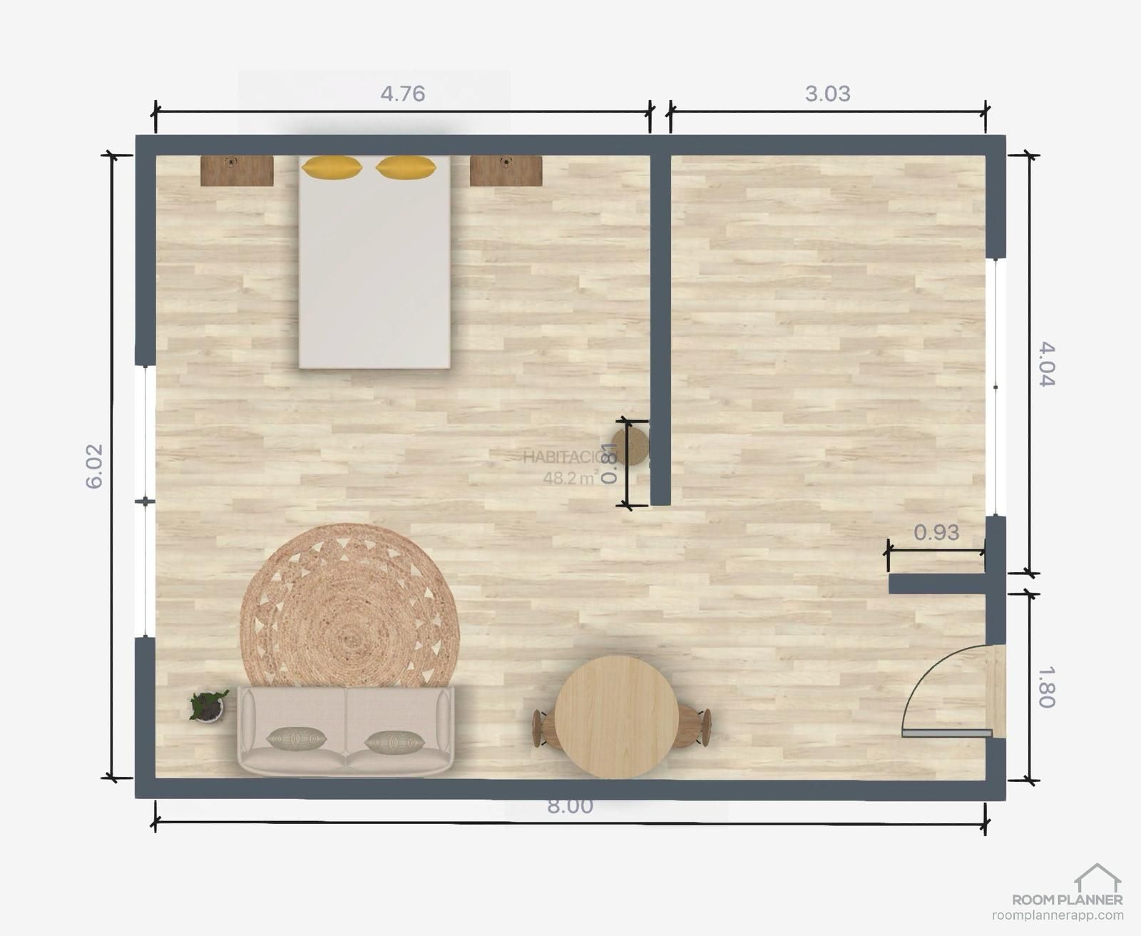 La idea era cambiar la zona de estar junto con el dormitorio. Con el objetivo de crear un ambiente cálido, cómodo y útil.