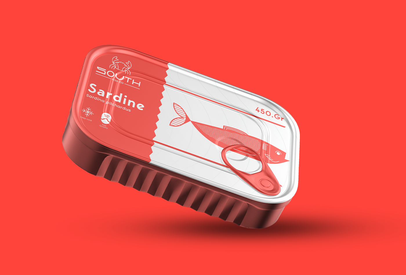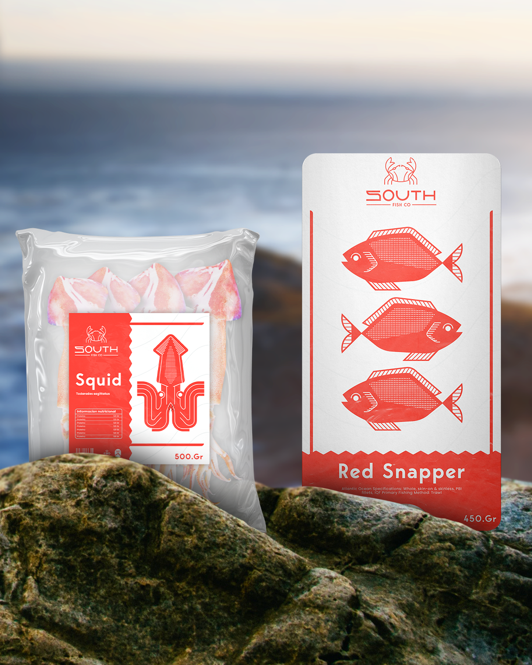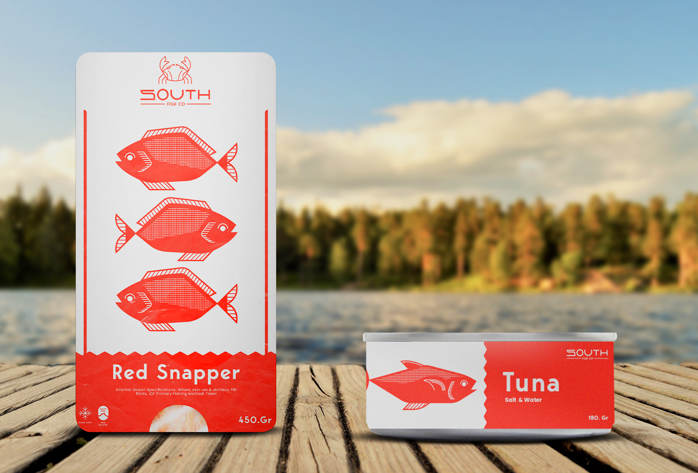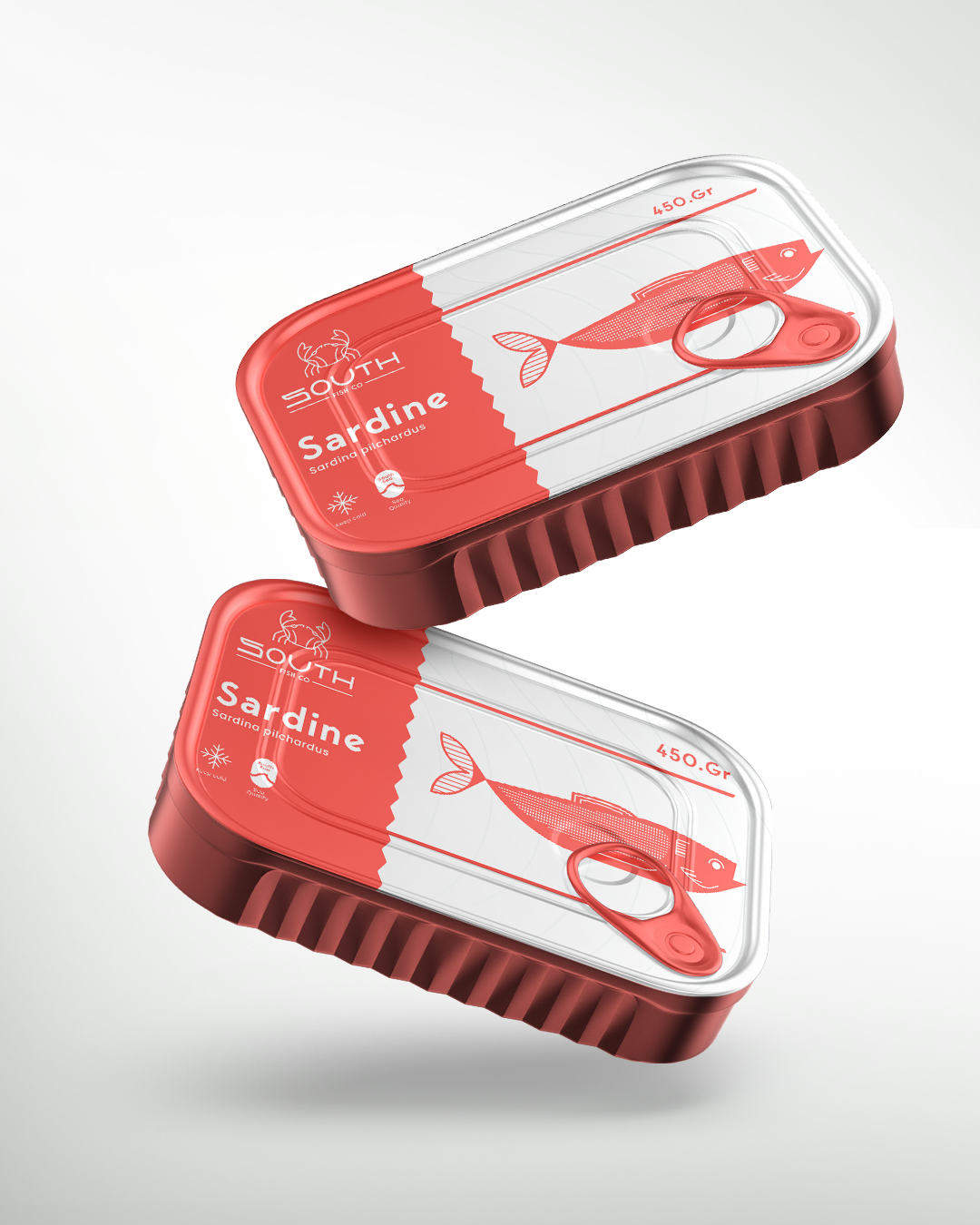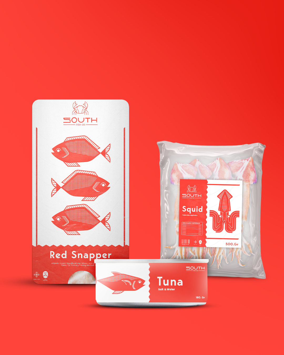 SOUTH is a conceptual company dedicated to fish extraction, founded in 2023. It combines the tradition of the sea with a modern, clean, and visually appealing approach. The brand embraces aesthetic simplicity, using illustrated graphic elements.