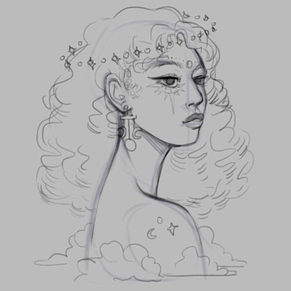 Com base no moodboard que montei, desenvolvi os primeiros rascunhos para a arte final.