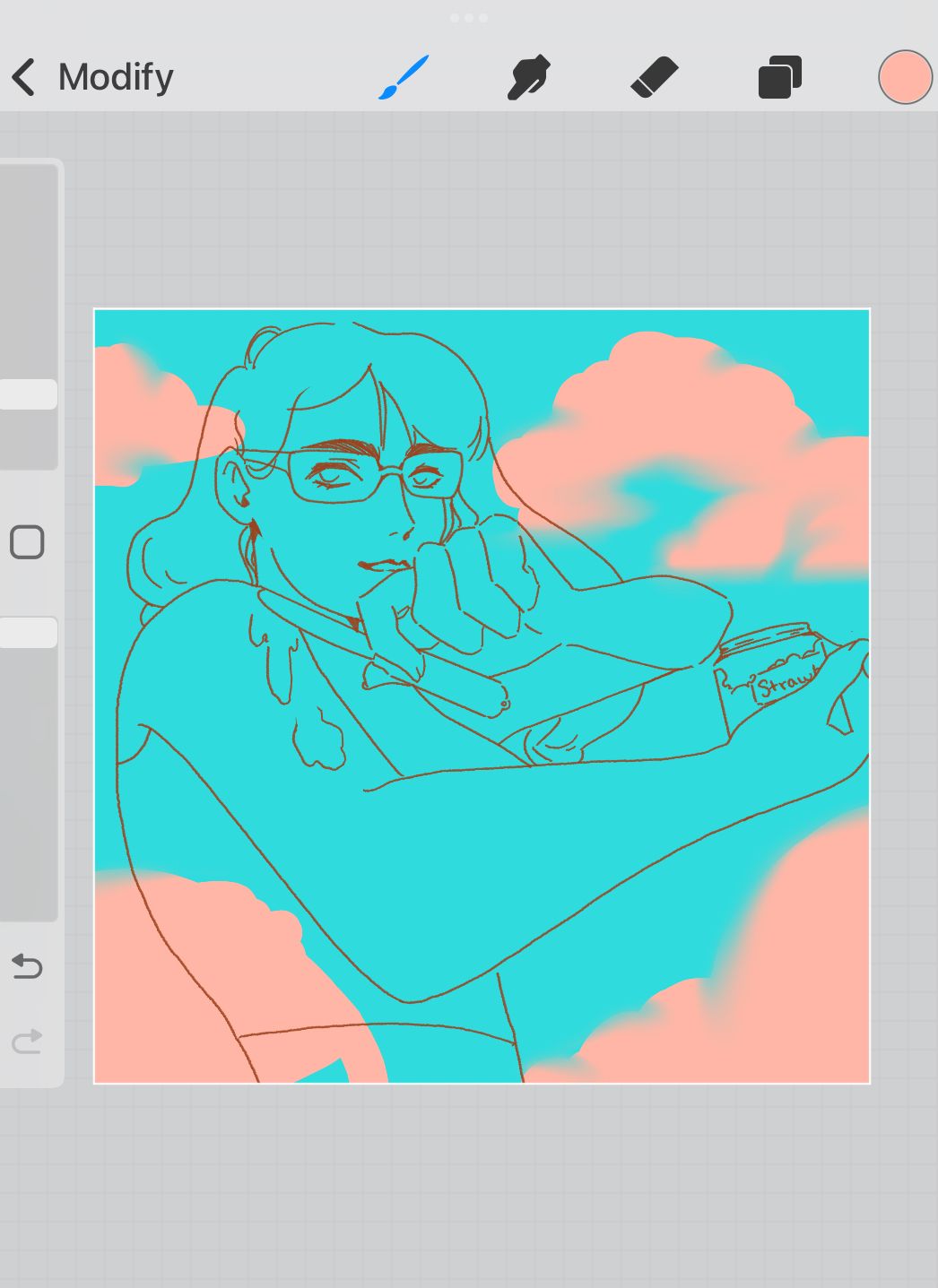 I started off by changing the canvas color and adding the clouds from the sketch. This became my background.
