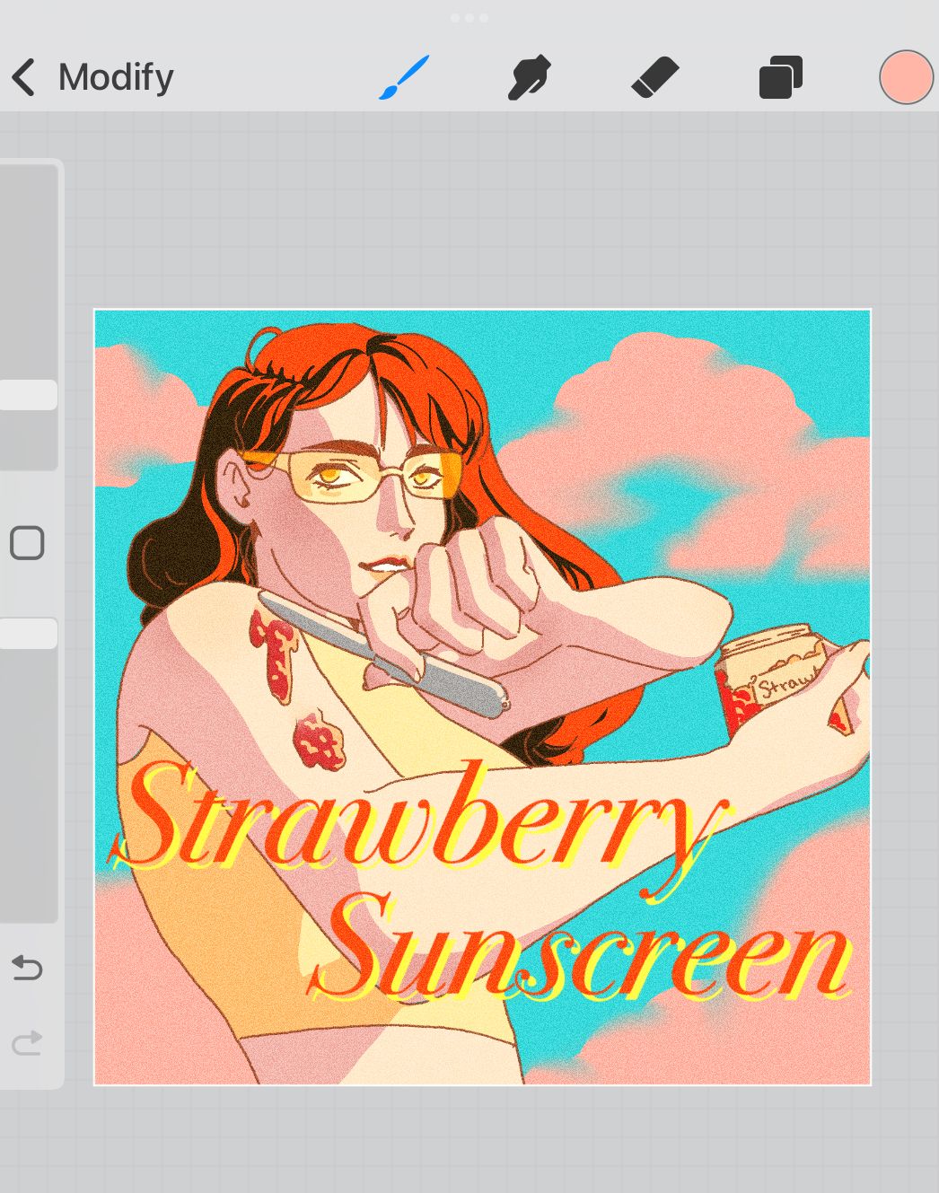 Originally I thought I would choose an album to try to illustrate, but after some thinking I settled for a song instead. I ended up choosing the song ‘Strawberry Sunscreen’ by ‘LostBoyCrow’ as my reference since it’s a personal favorite. I like feel good music. :)