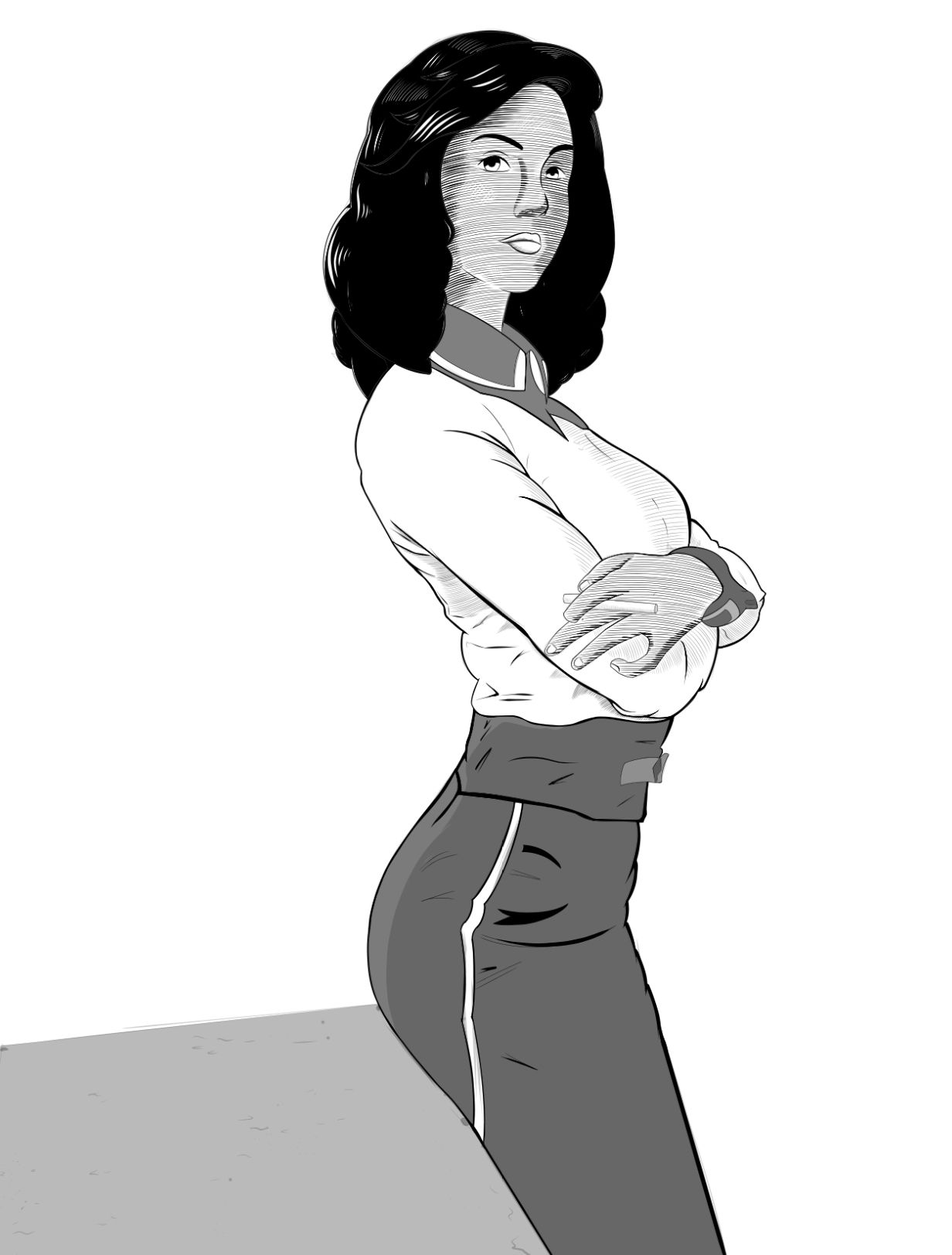 Boceto a partir de una fotografía de una chica en blanco y negro