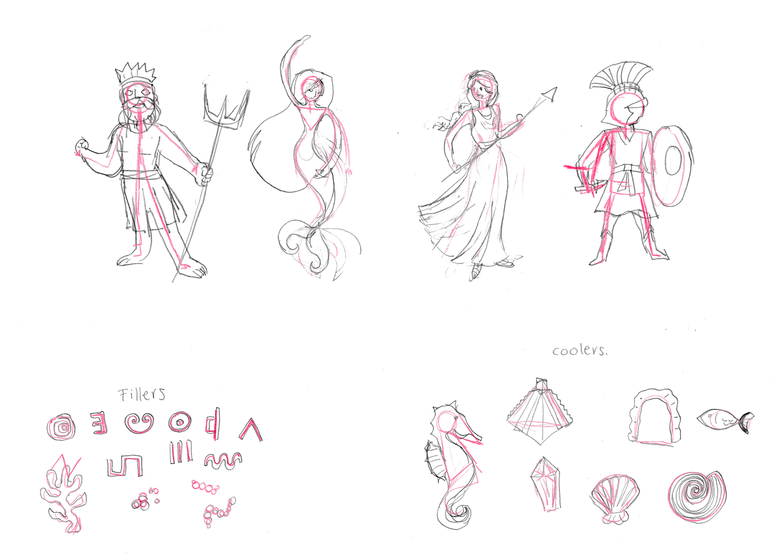 Aqui muestro los bocetos del proceso de mi pattern inspirado en la Atlántida 😃🧜🏻♀️