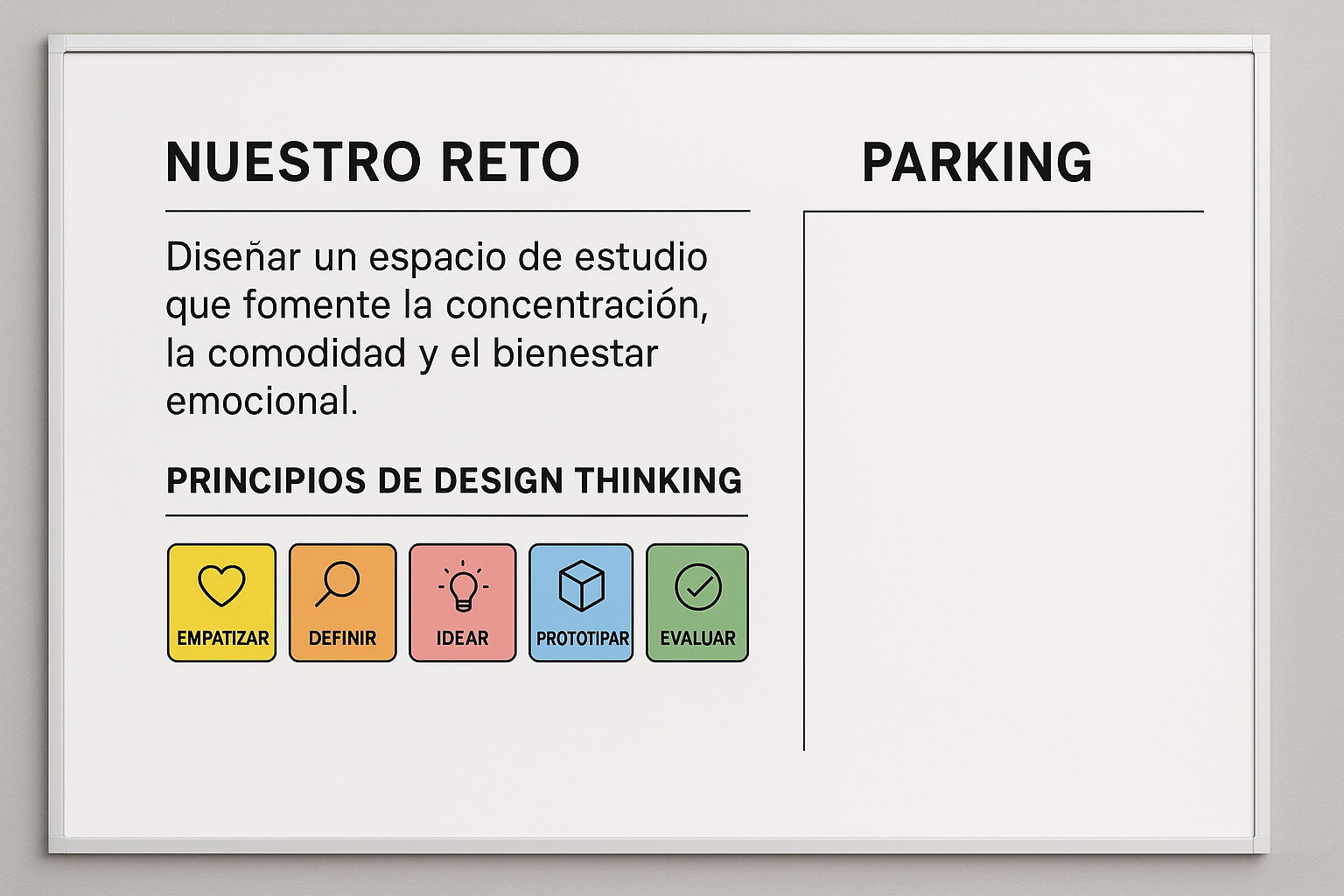 Organizar el espacio de trabajo de esta manera me permitió visualizar el proceso completo, mantener claras las metas y trabajar de forma más colaborativa y estructurada. Tener el reto siempre visible me recuerda el propósito, mientras que el “parking” me da libertad para capturar la creatividad sin interrumpir el flujo del trabajo.