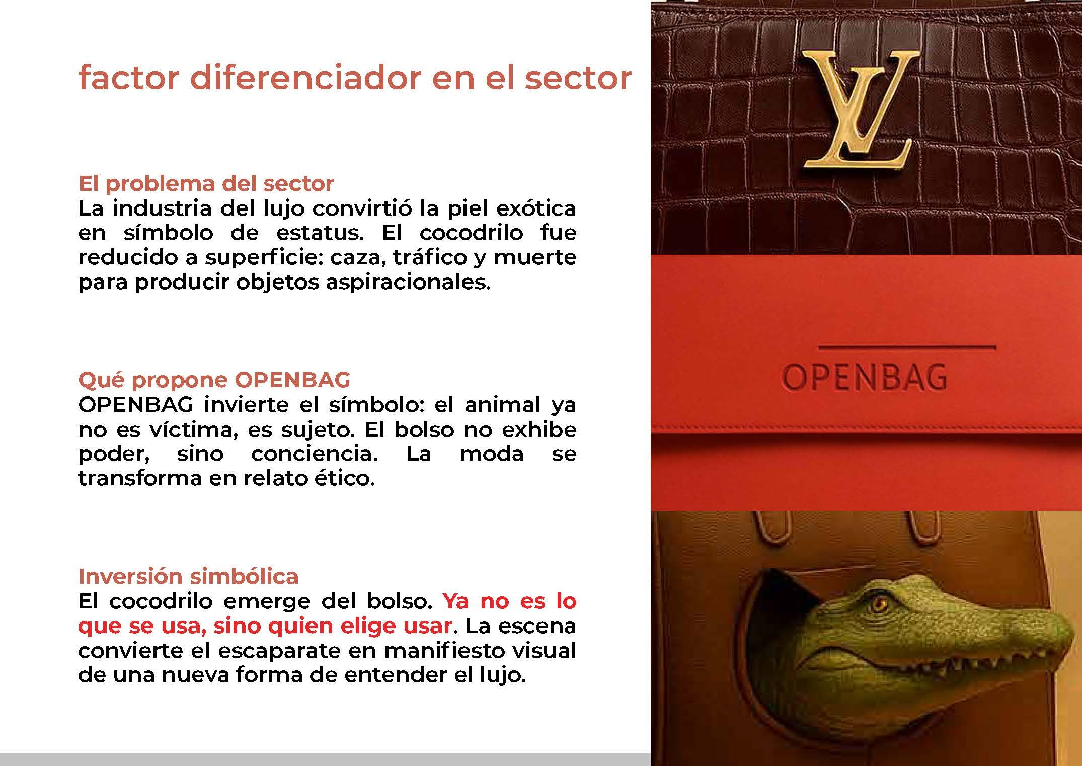 Este proyecto es una propuesta de escaparate para OPENBAG, una marca de bolsos con enfoque eco y storytelling visual. El concepto se construye a partir de una metáfora: “la piel ha cambiado de lado”, una forma de hablar de transformación y responsabilidad material sin caer en lo literal.
