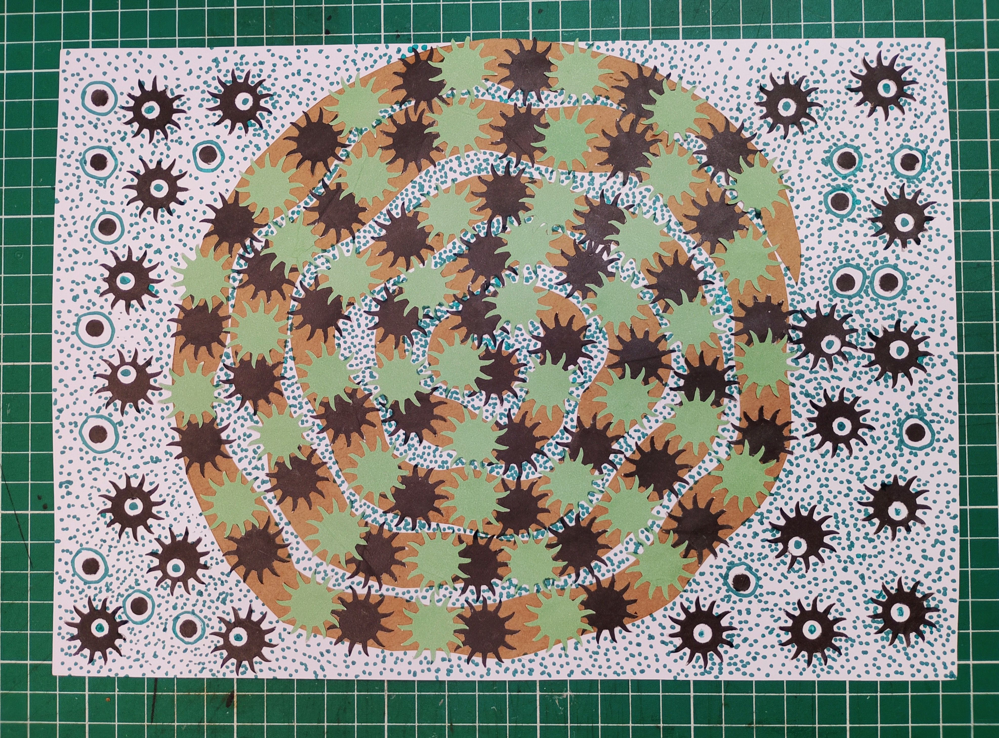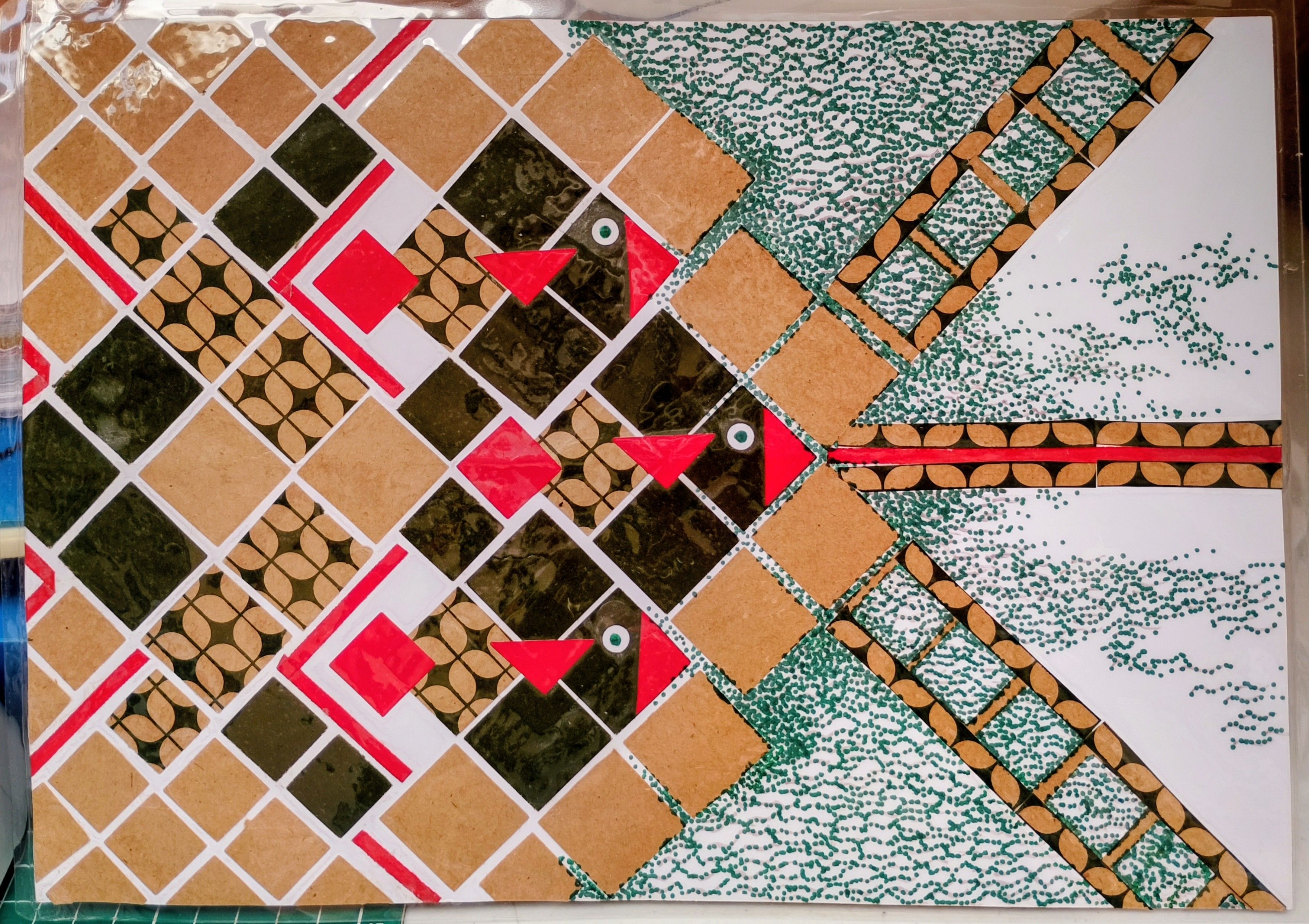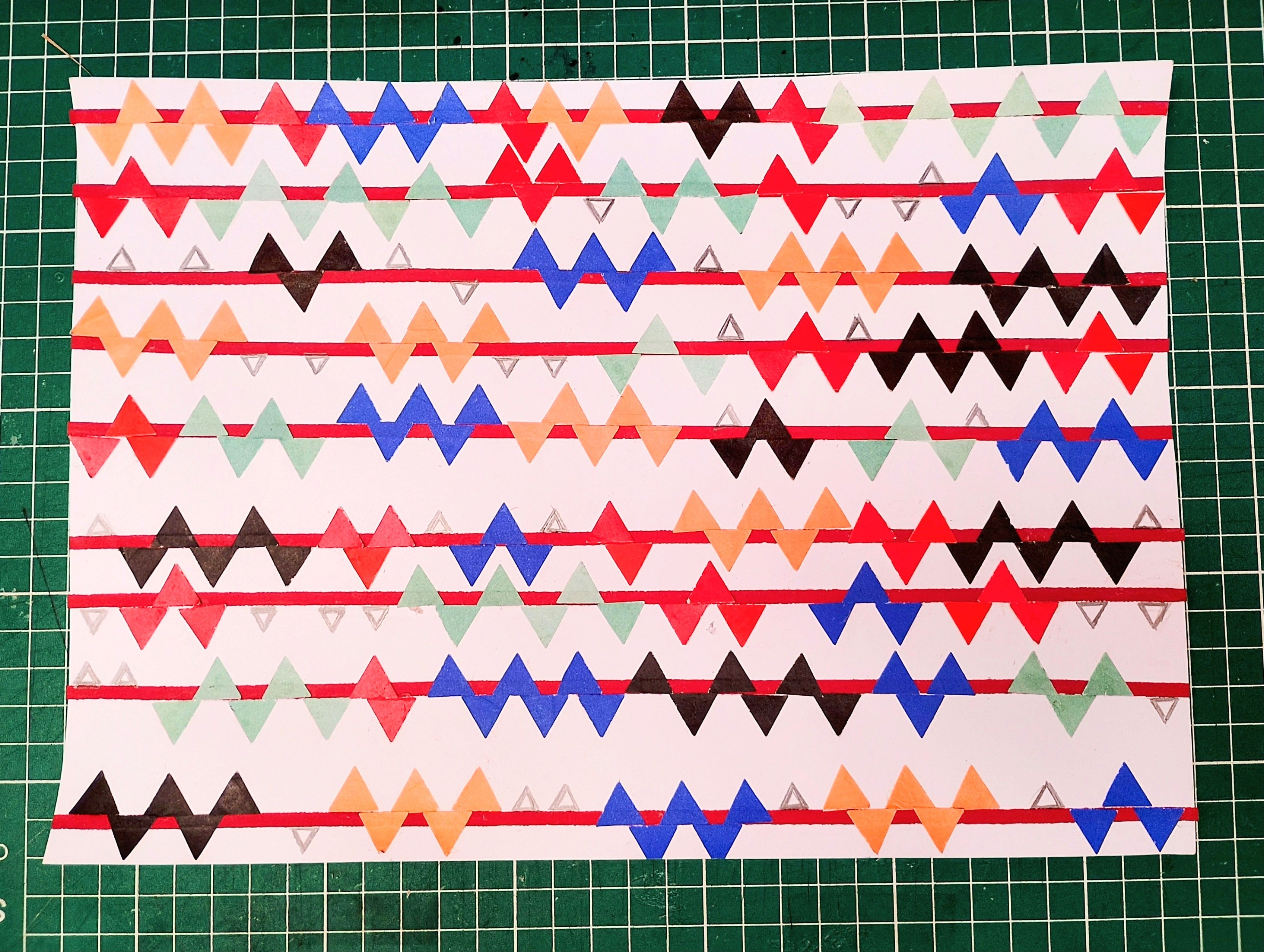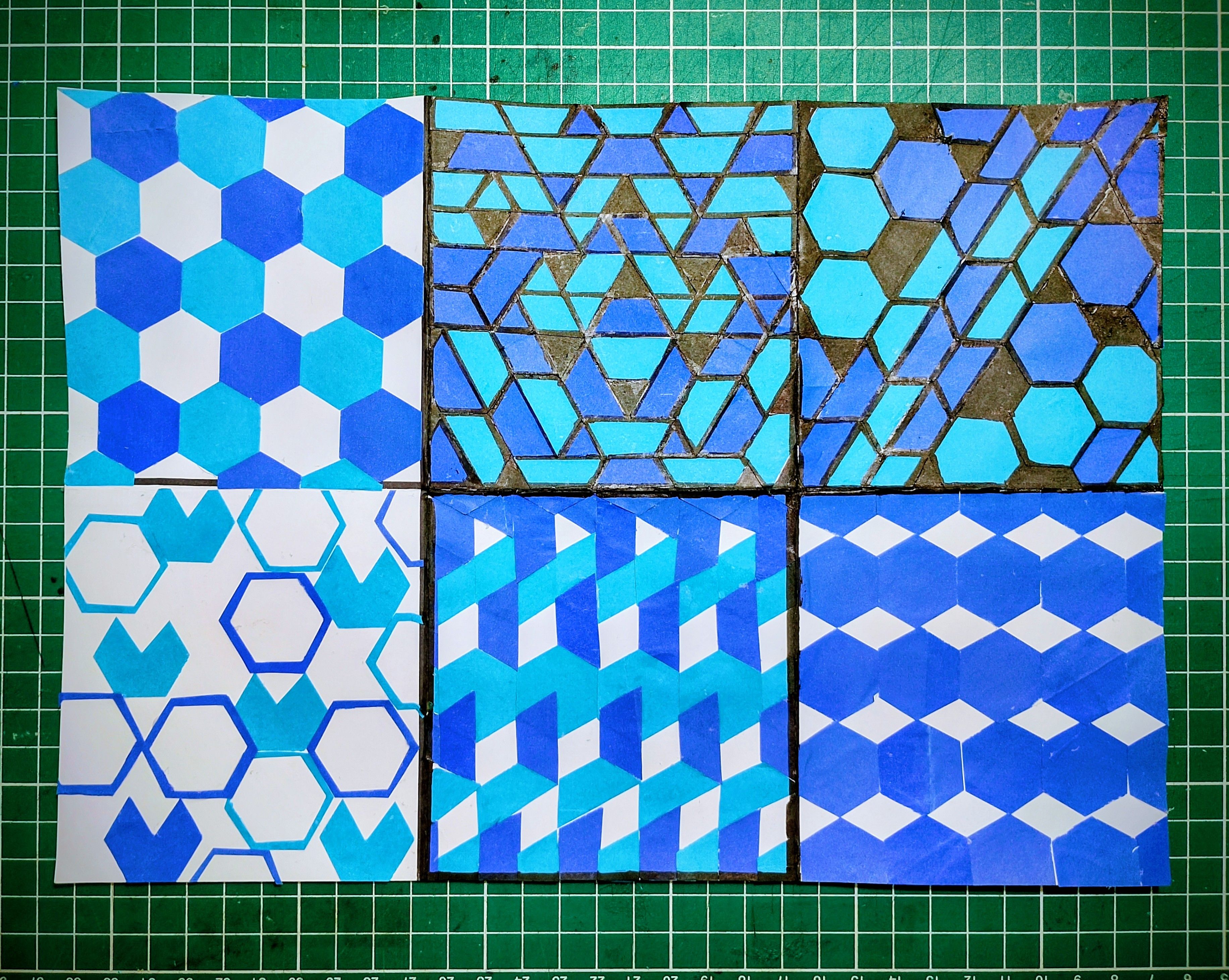 Criei estudos com recortes modulares para inspirar futuros trabalhos têxteis.