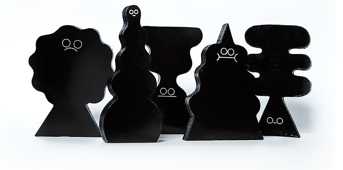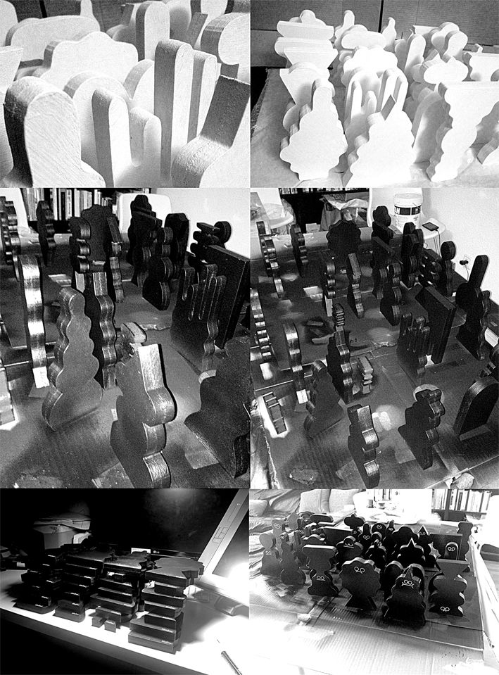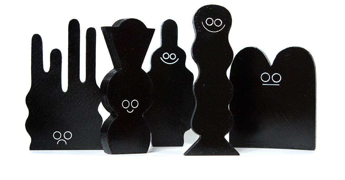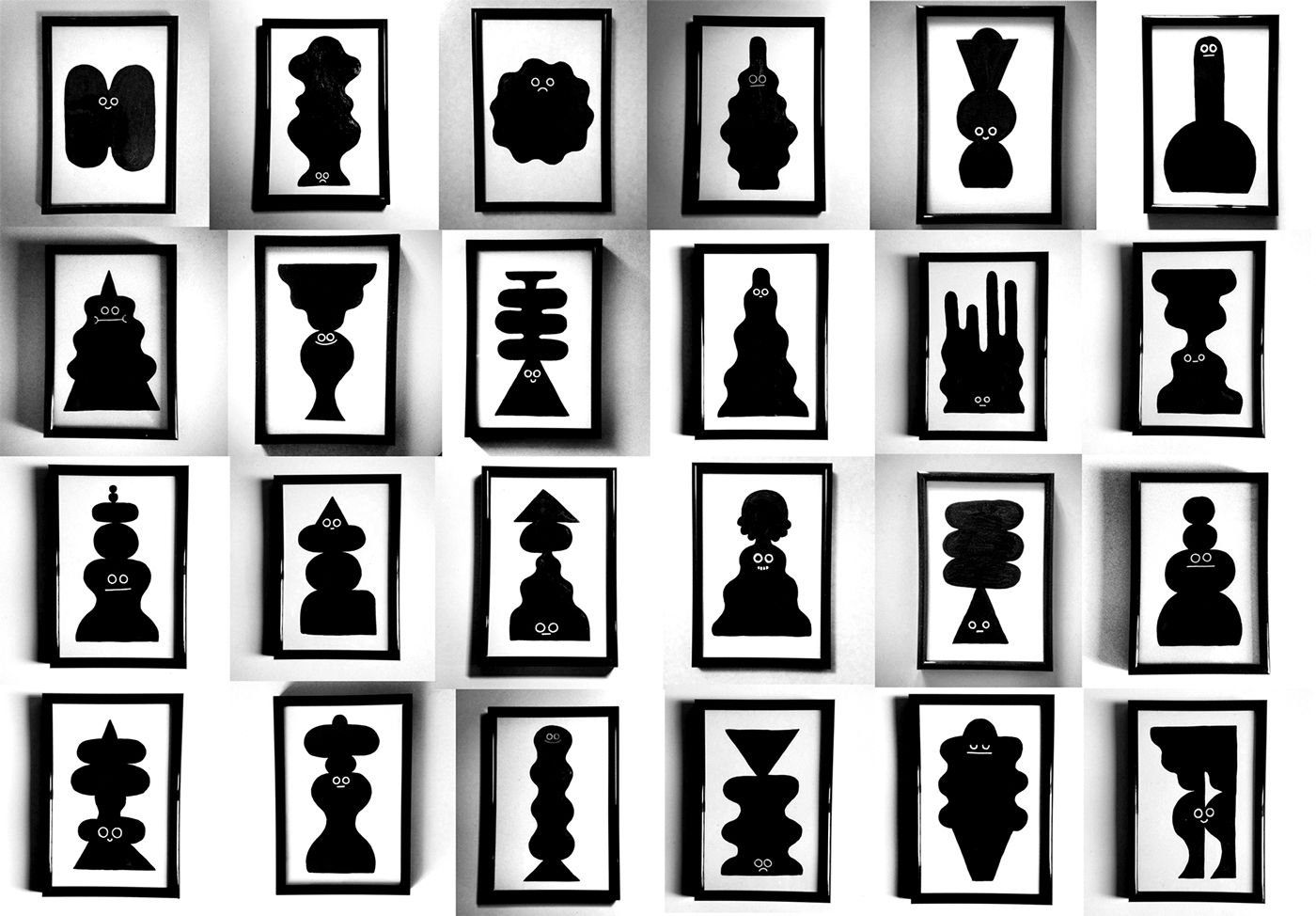 Este proyecto surge de un movimiento internetero llamado "inktober". Inktober consistía en subir un dibujo a tinta cada día durante el mes de octubre, pero como yo no tenía mucho tiempo libre para hacer ningún dibujo bueno, hice unas formas sencillas (a tinta, eso si). Después me di cuenta que esas formas podrían funcionar bien como objeto así que las fabriqué todas en madera, las pinté e hice esta colección. Estas que veis son el prototipo (las hice en casa), pero ya estoy haciendo una tirada nueva de una forma más mecánica.