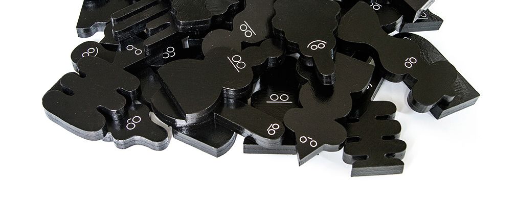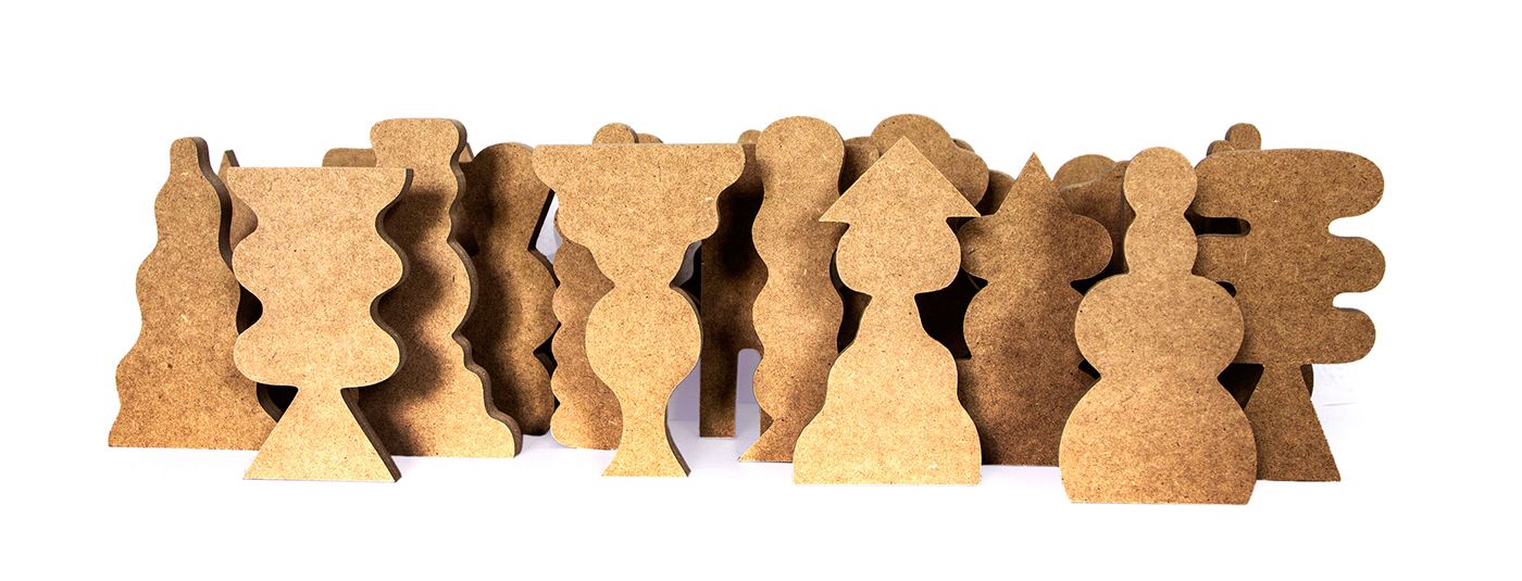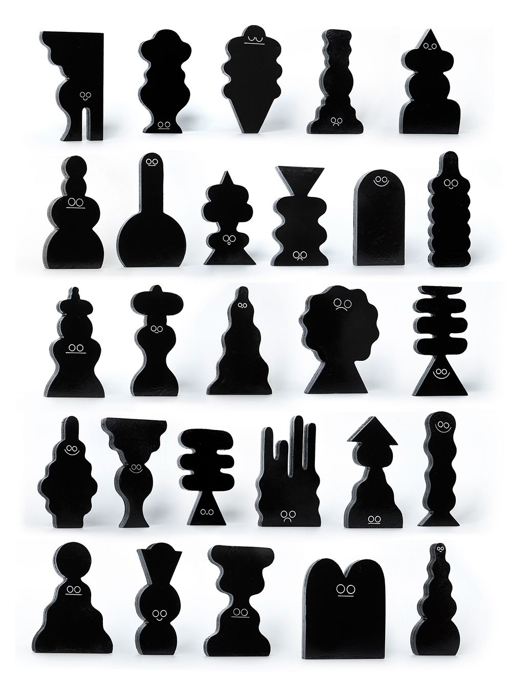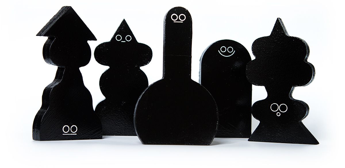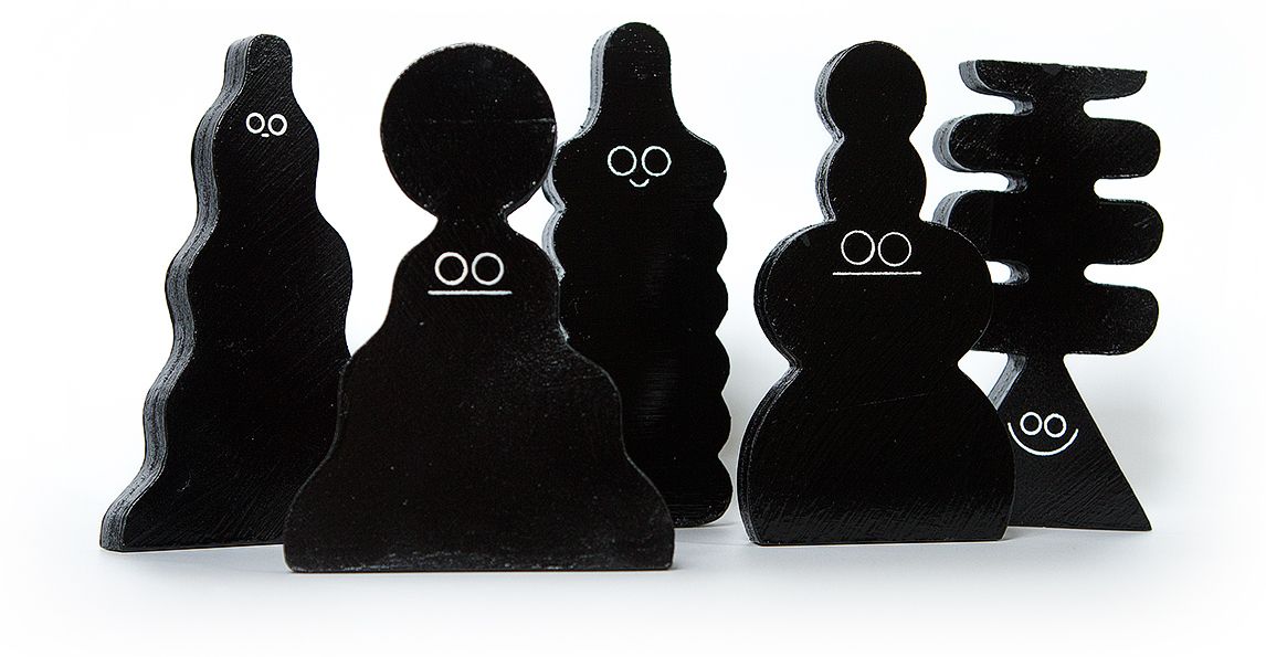 Este proyecto surge de un movimiento internetero llamado "inktober". Inktober consistía en subir un dibujo a tinta cada día durante el mes de octubre, pero como yo no tenía mucho tiempo libre para hacer ningún dibujo bueno, hice unas formas sencillas (a tinta, eso si). Después me di cuenta que esas formas podrían funcionar bien como objeto así que las fabriqué todas en madera, las pinté e hice esta colección. Estas que veis son el prototipo (las hice en casa), pero ya estoy haciendo una tirada nueva de una forma más mecánica.