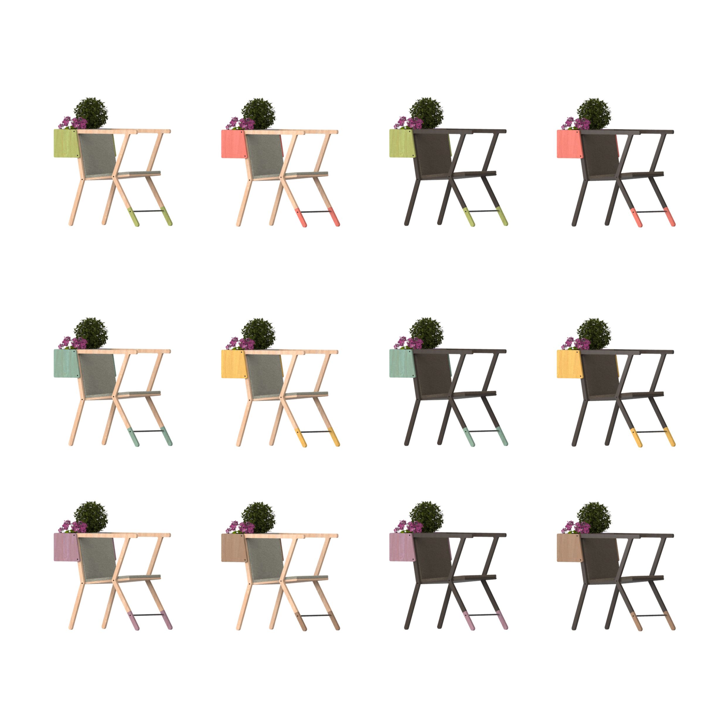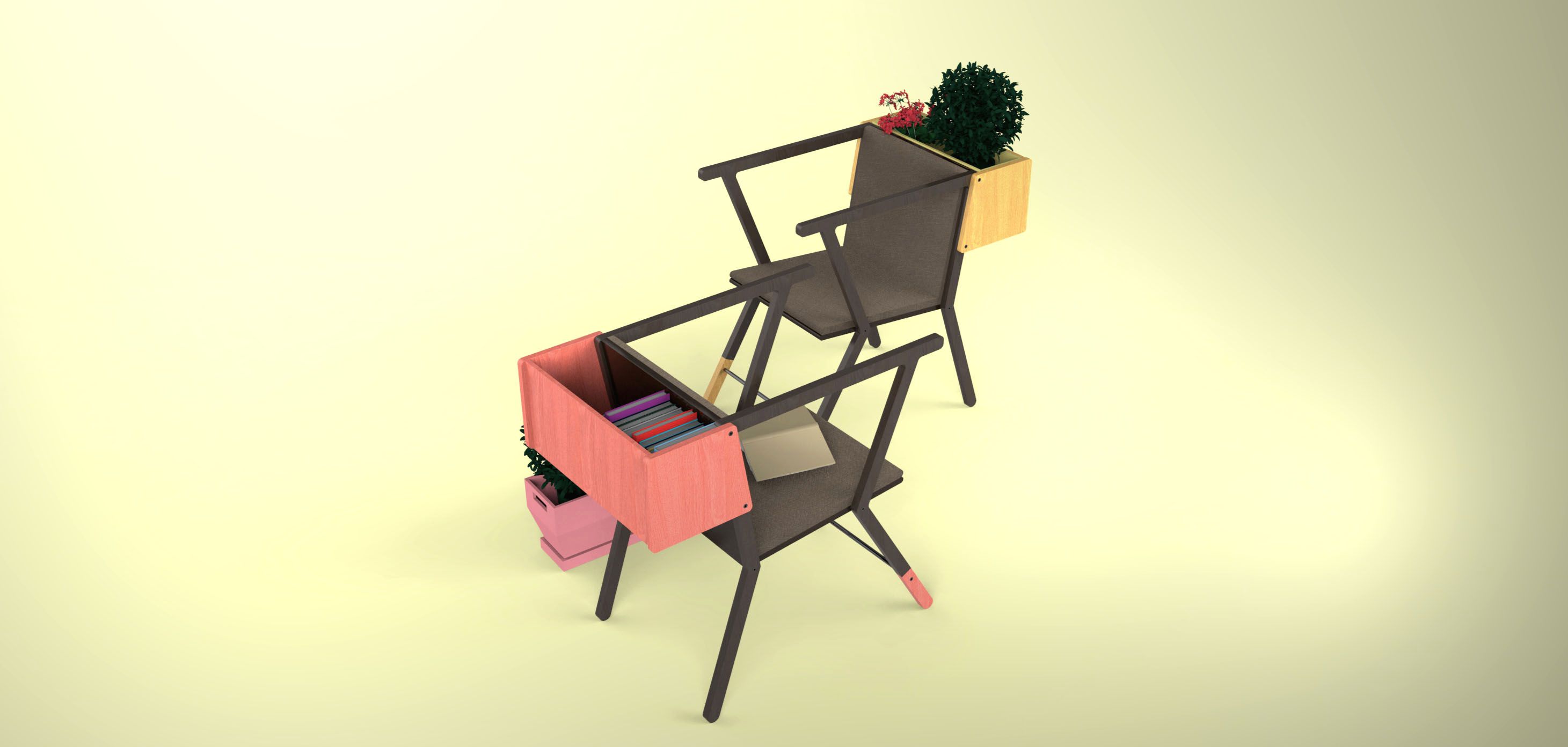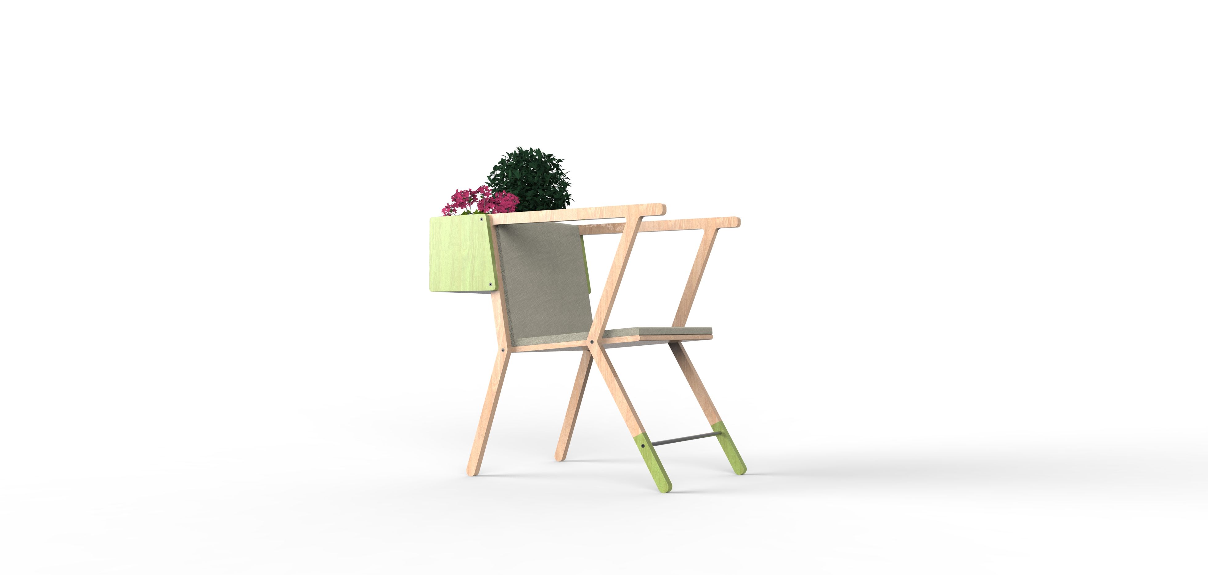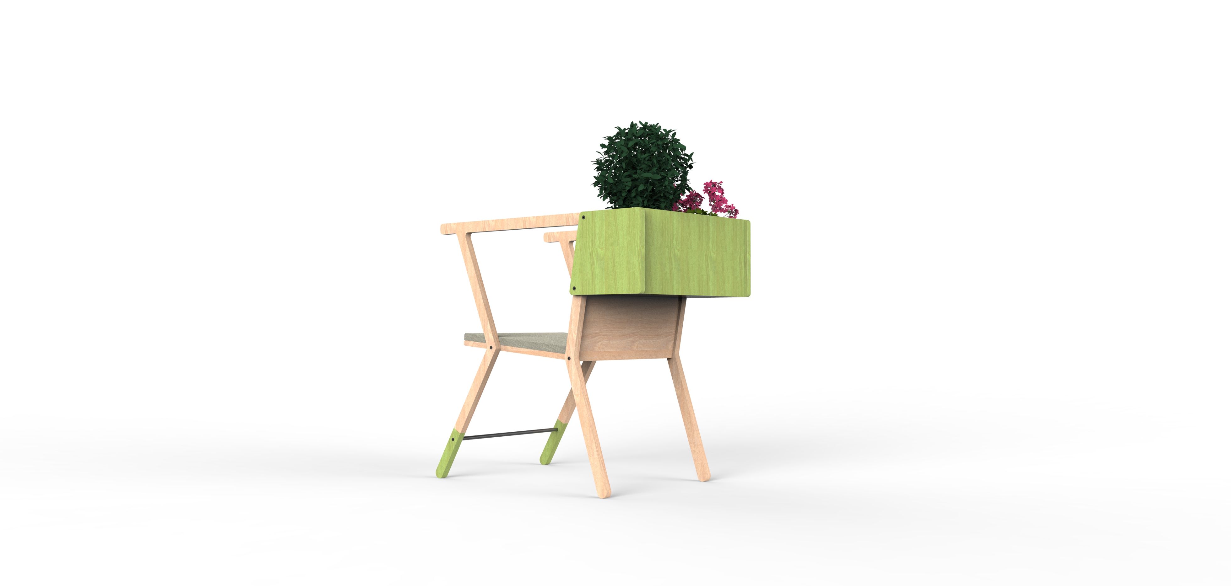Settle is a planter chair or a container chair, depending on what the user wants to place in it. Ergonomically designed with its adjustable angle and armrest height, it's made of oak wood, as it's easily found and has been one of the most widely used throughout history, given its strength and durability.