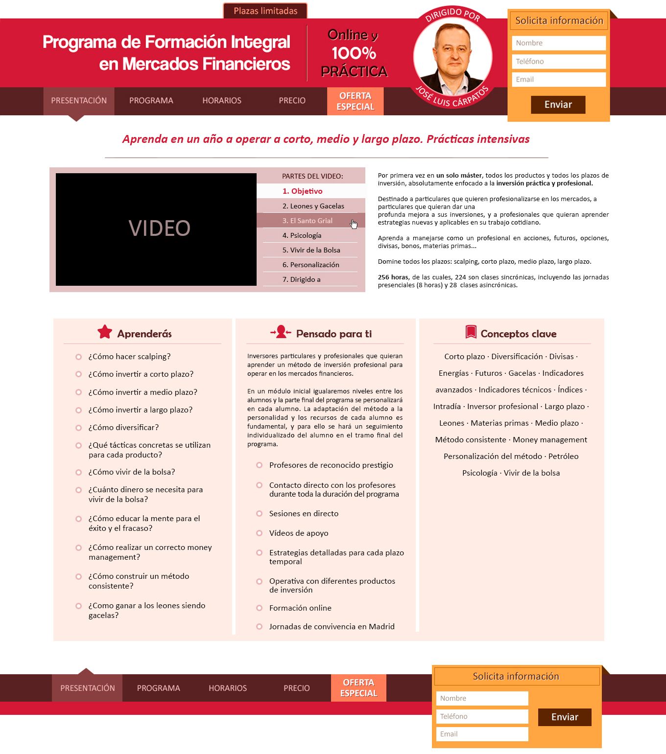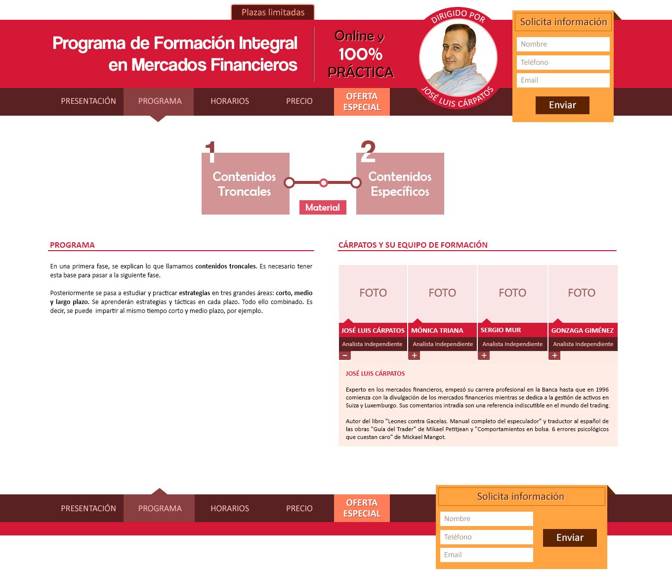 Diseño de la interfaz gráfica de un site para promocionar un curso organizado por Estrategias de Inversión y José Luis Cárpatos.