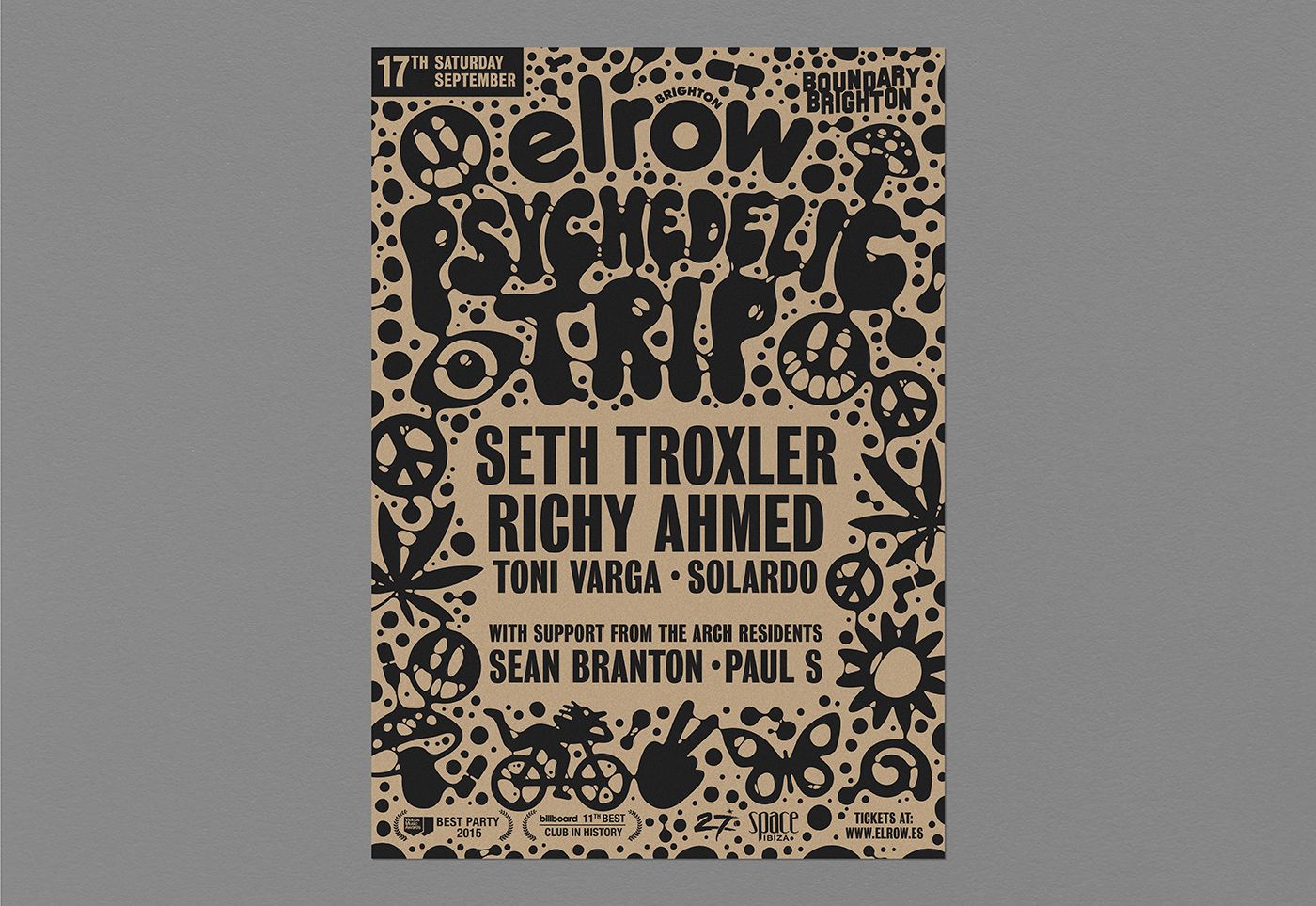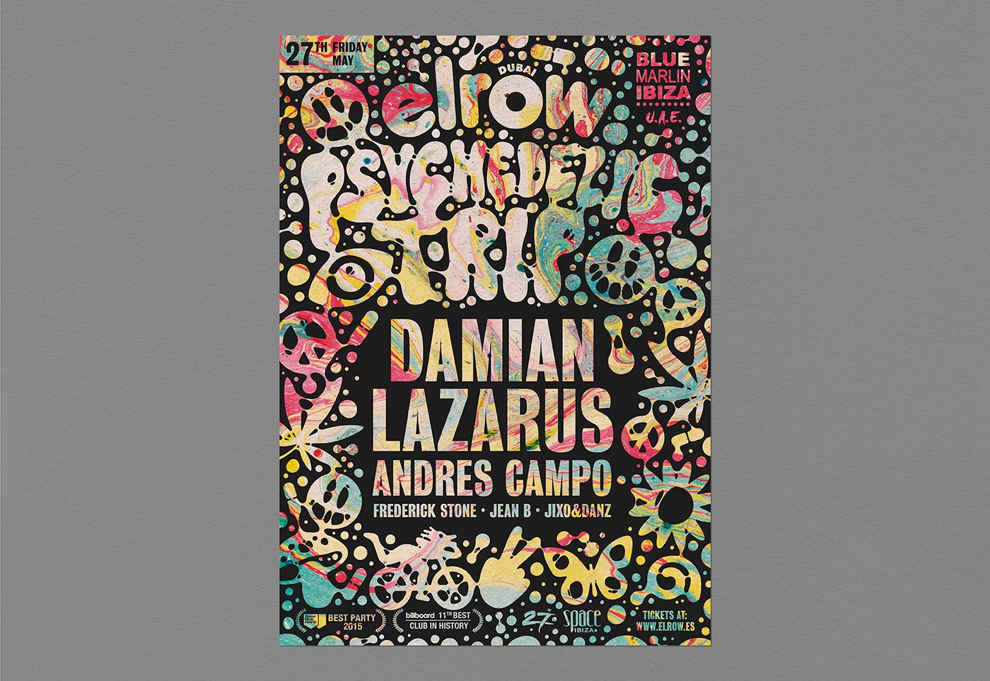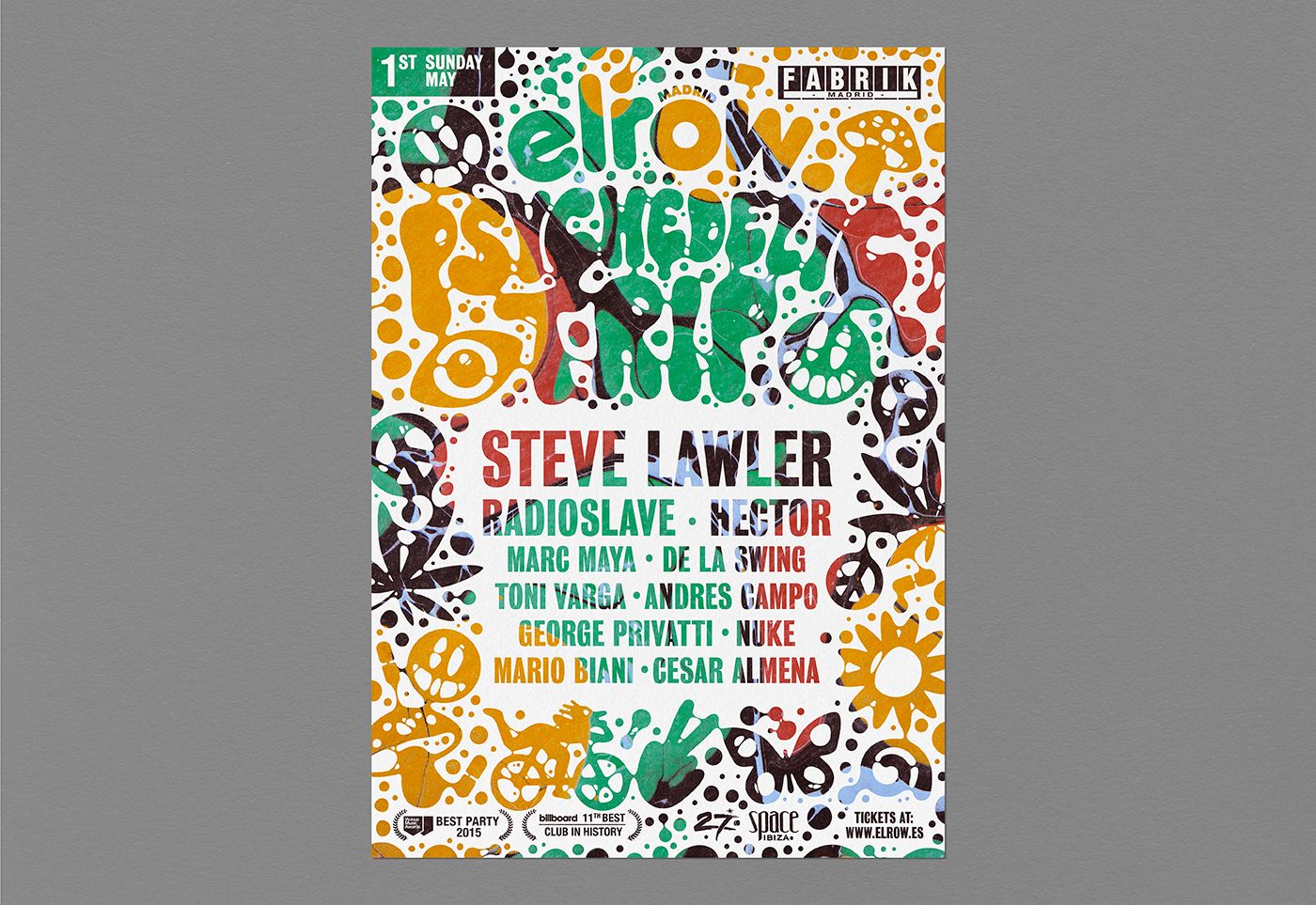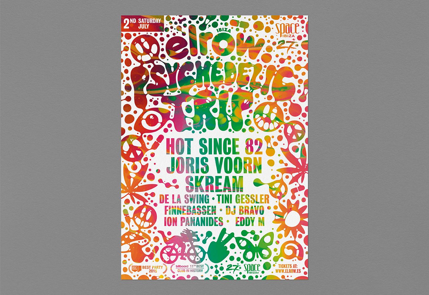 Design for Elrow's "Psychedelic Trip" party for different locations (Madrid, Ibiza, Dubai, Leeds and Brighton).