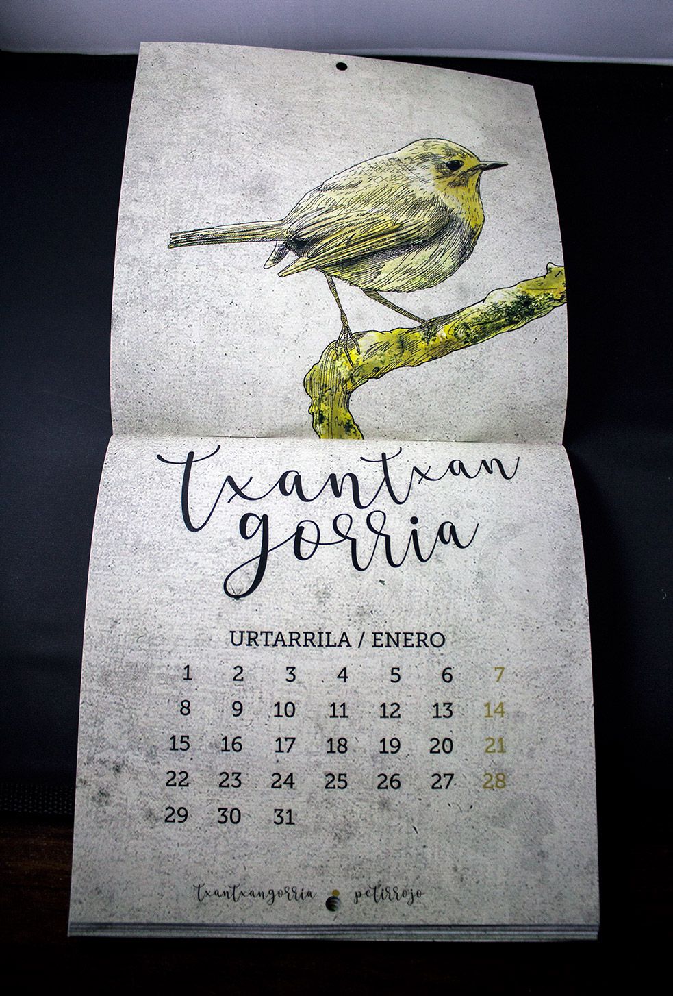 Calendario 2018. Hegoak Astintzen. 12 meses 12 aves.