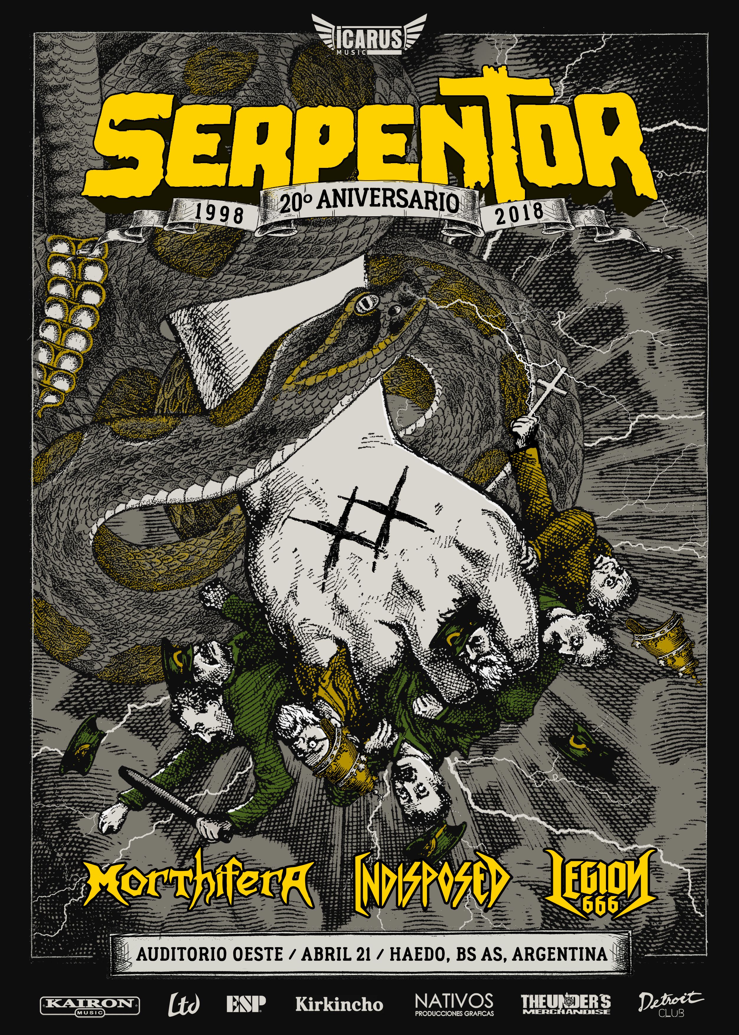 Este es el resultado de mi primera experimentación con las técnicas que aprendí en este curso. Aproveché la ocasión del 20º aniversario de Serpentor, banda de thrash para la que trabajo siempre, y lo propuse como gráfica para el show de festejo, sin mucha esperanza de que les interesara ya que no va en la línea que habitualmente seguimos ni de la estética del género, pero gustó mucho! La contra de esto fue que el proyecto pasó a tener fecha de entrega y siendo una técnica totalmente nueva para mi, no me alcanzó el tiempo para pulir unos cuantos detalles. De todos modos estoy muy contenta con el resultado y ansiosa por trabajar en más proyectos de este estilo :)
