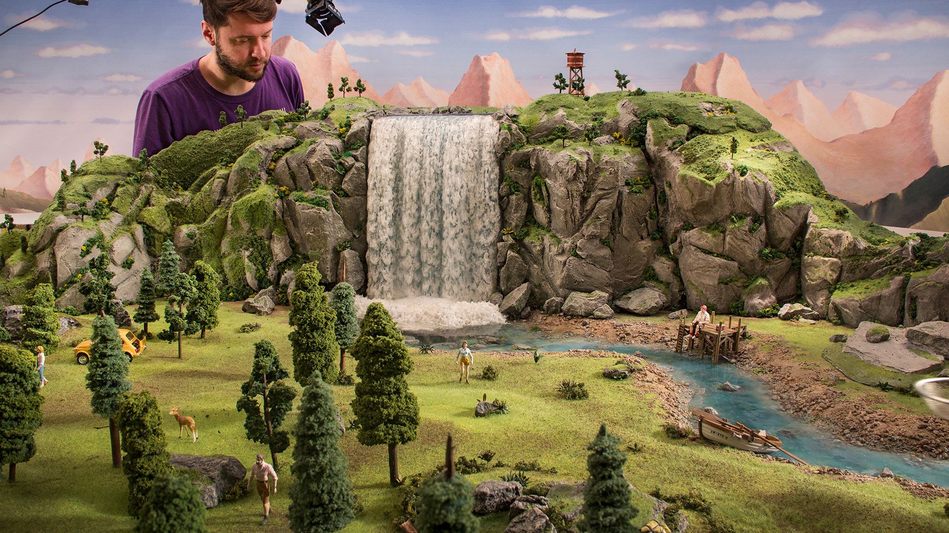 For this Becker beer commercial, my team and I built a 1:25 scale model of a natural landscape. The biggest challenge was creating a system to add real water to the waterfall and river.