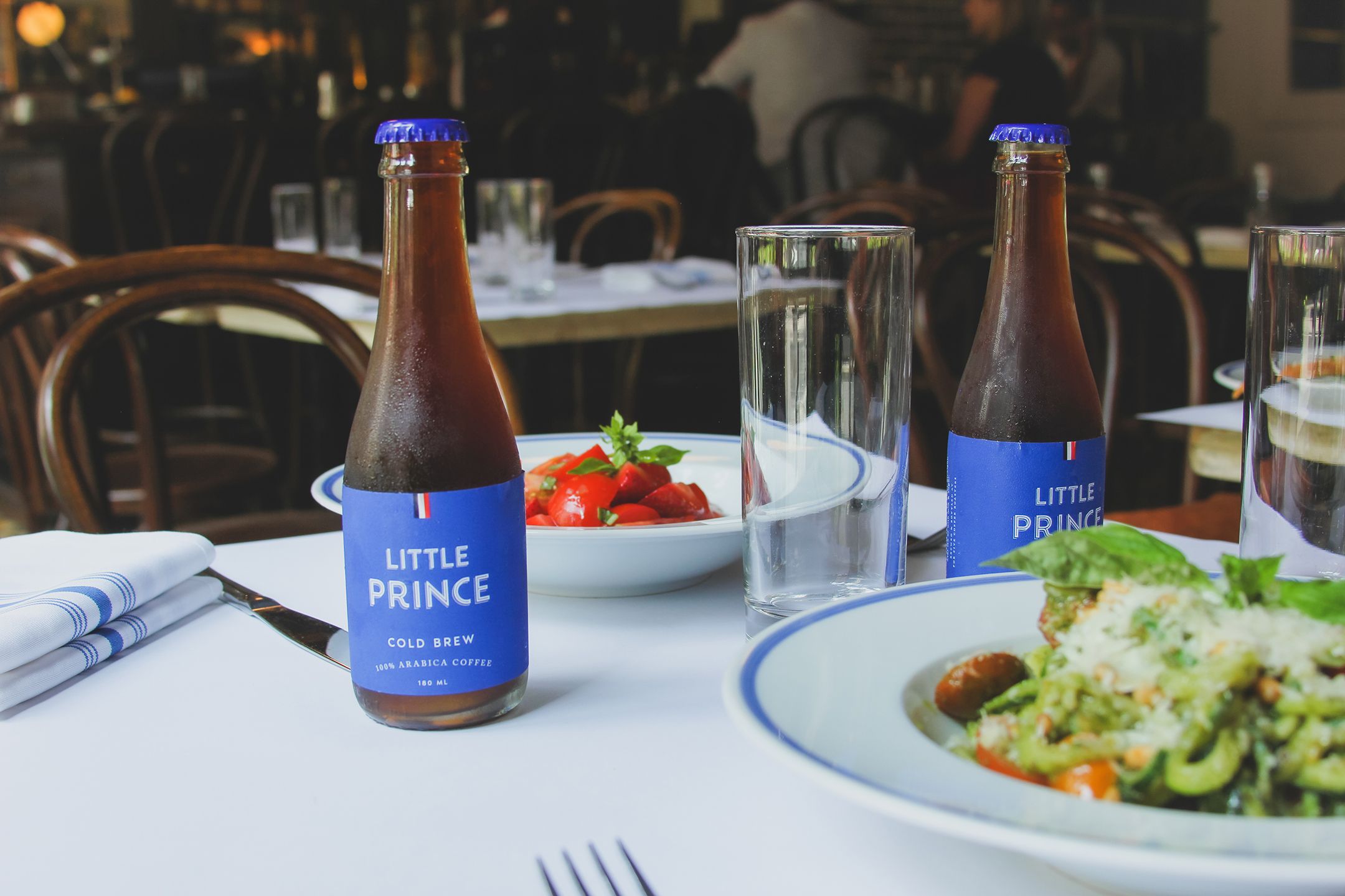 When we were asked to redesign Little Prince's identity, we were delighted to bring a little French finesse to the bistro. We designed a custom wordmark that depicts this spirit, followed by a set of collaterals including menu, business cards and labels for their cold brew drink. We were inspired by the classic Breton shirt with blue stripes, added a touch of red and paired it with some quirky wording set in contemporary use of type.