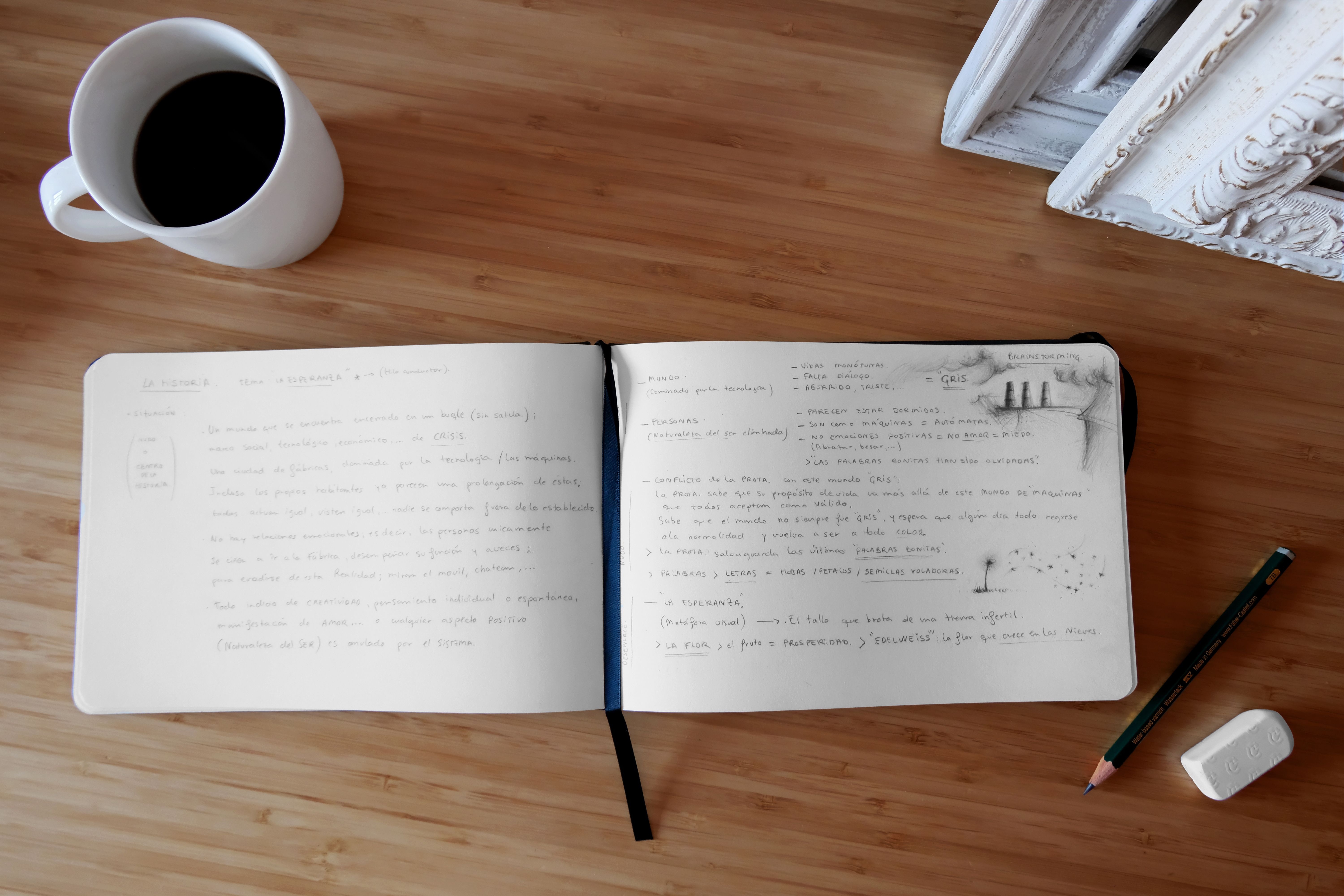 En primer lugar se buscaron y reunieron ideas para el relato. La inspiración puede llegar en cualquier