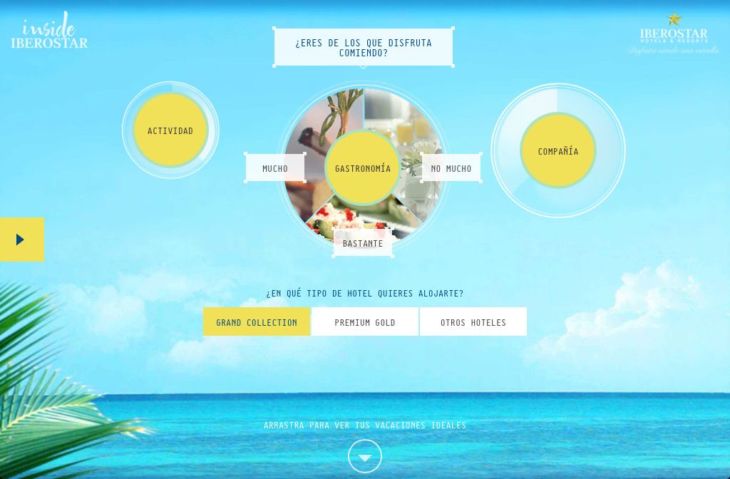 El microsite de Inside IBEROSTAR, adaptado a Ipad, ofrece al usuario trece vídeos que muestran a clientes reales disfrutando de sus vacaciones. Posteriormente, son los propios empleados de la cadena quienes muestran sus secretos para conseguir y garantizar ese disfrute. El microsite permite además al usuario seleccionar aquellos vídeos que más se adapten a sus preferencias a través de tres simples preguntas: ¿Qué buscas en tus vacaciones?, ¿Eres de los que disfruta comiendo? y ¿Con quién viajas?, para así configurarte unas vacaciones en función de tus preferencias.