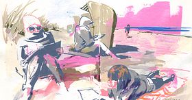 Pictură cu guașă a peisajelor urbane