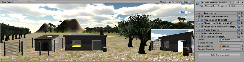 *Script: Con la puerta cerrada el jugador se acerca (al espacio de la colisión) y se abre, al cabo de un rato se cierra. Sonido incorporado.