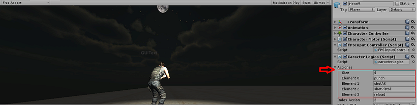 Personaje - Unity. Acciones de la animación del personaje, GUIText...
