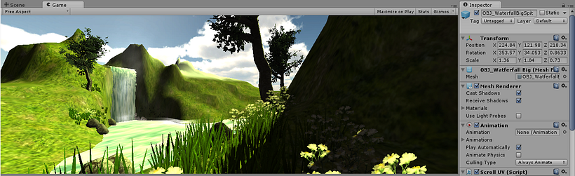 Terreno III - Unity. Cascada (párticulas) y Wine Zone.