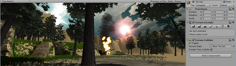 Terreno II - Unity. Prefabs, Shader, Fuego/Humo con Partículas.