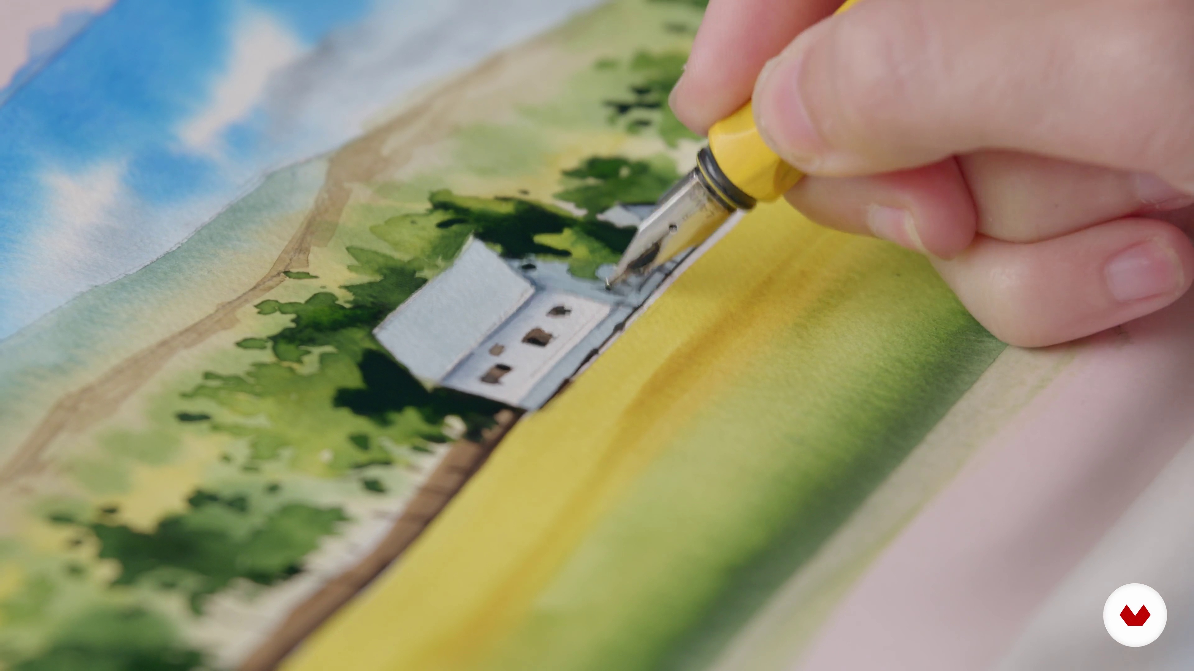 “Ana renk noktalarını belirledikten sonra sıra onları detaylarla şekillendirmeye geliyor. Bu dersimde suluboyanın yanı sıra çiziminize derinlik ve hacim kazandırmak için kalem ve mürekkebi nasıl kullanacağınızı öğreteceğim. Sihir başlasın!”