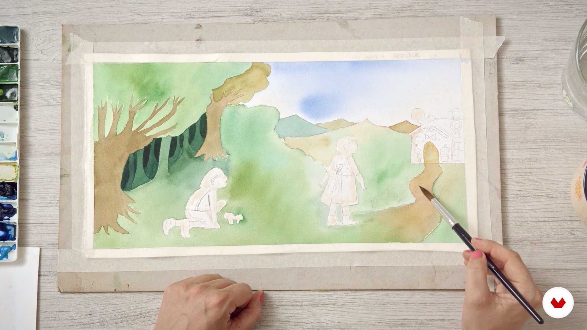 Bu video dersinde Antonia Roselló Rodríguez Domestika çevrimiçi kursunun bir parçası olan arka planı boyamak konusunu ele alıyor: Çocuk Hikayeleri için Suluboya İllüstrasyon . Çocuk kitaplarının sayfalarını duygularla doldurarak bir boya fırçasının harikalarını keşfedin.
