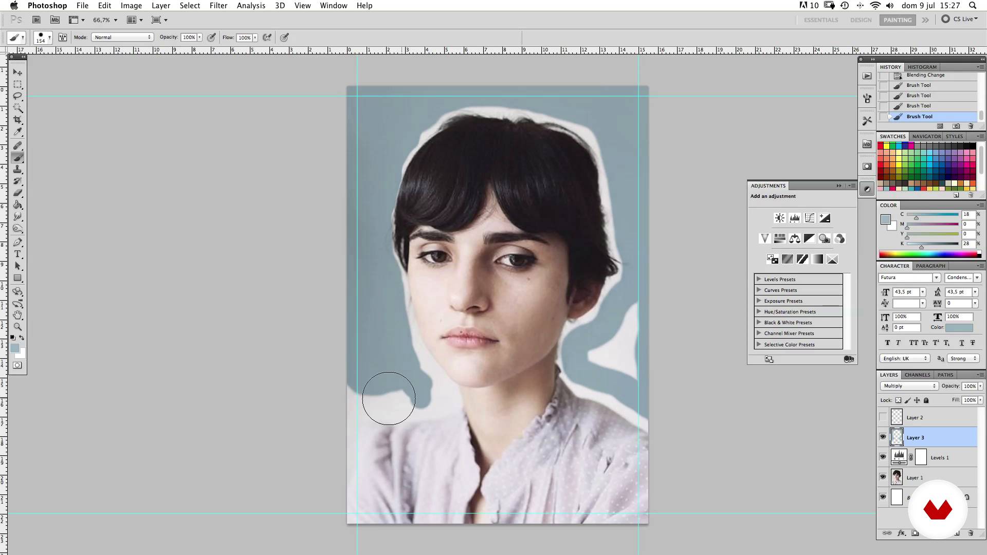 “Artık taslağımız var ve şimdi Photoshop'ta işleyip. son kapak resmimizi boyamak için kullanacağımız bir referans elde etmemiz gerekiyor. Hadi başlayalım. Daha önce taslakta belirttiğim gibi. yüzü kısmen beyaz bir leke ile kaplı bir kadın yüzü seçtik. Bu seçim. temamızla uyumlu bir görsel oluşturuyor. Belki de kitabın anlattığı beyaz körlüğe atıfta bulunarak. Görsel araması yaptım ve bu fotoğrafı kadın yüzü. Buna Doktorun Karısı adını verdik. Bu seçim. temamızla uyumlu bir görsel oluşturuyor. İlk olarak. bu resmi işlemek için Photoshop'ta açacağız. Bu görüntüyü elde ettik. şimdi başka bir do...”