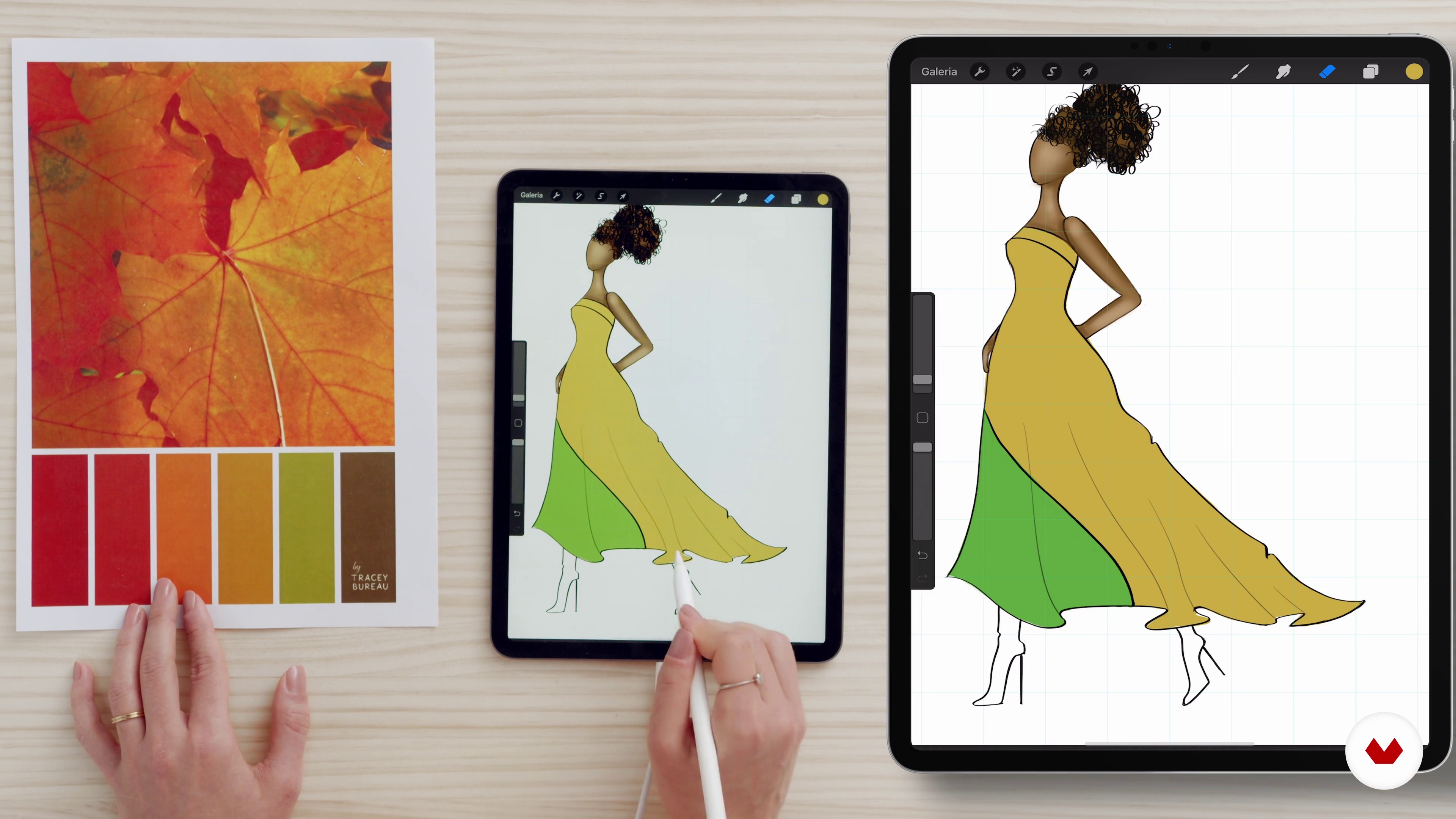 “Bu dersimizde koleksiyonumuz için seçtiğimiz renk paletini nasıl kullanacağımı göreceksiniz. Tüm renkleri aynı modelde kullanmanıza gerek yok, koleksiyonun birkaç parçadan oluştuğunu unutmayın, bu nedenle renkleri koleksiyon genelinde nasıl dağıtacağımızı bilmeliyiz.”