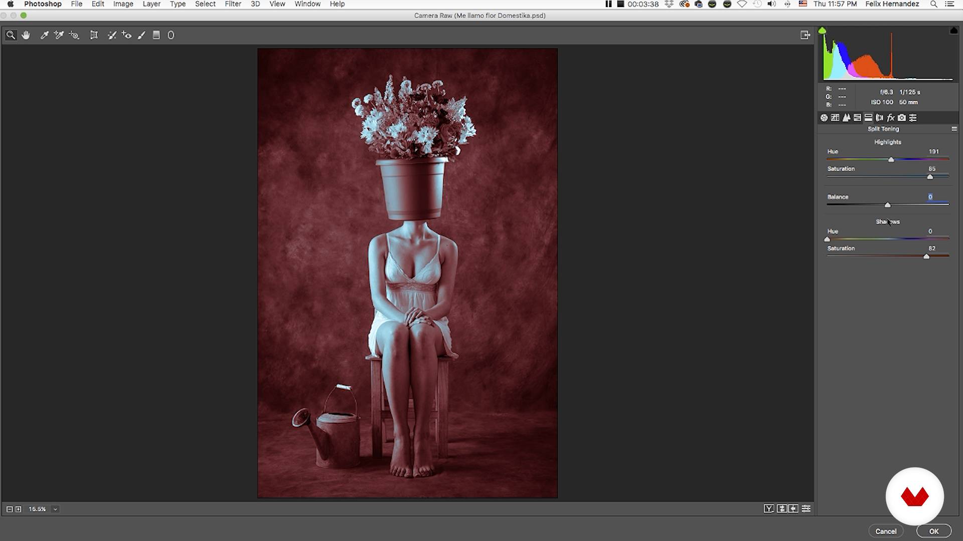 “Peki. farklı versiyonları siyah beyaz olarak göstermeden önce size ekstra bir ipucu vermek Gölgeler ve parlaklıklar. yüksek ışıklar için renkler atayabiliriz. Bu çok basit bir şekilde yapılabilir ve elbette artık siyah beyaz bir görüntü olmaz. Ama aynı zamanda keşfetmeye değer başka bir seçenektir. Ve burada siyah beyaza çevirdiğimiz görüntülerden birini seçtim. Ve basitçe tekrar filtreye gideceğiz. Tekrar Camera Raw Filtre'yi açacağız. veya kırmızı kamera filtresi. bizi Camera RAW'a götürecek ve göreceğiz... görmediğimiz başka bir ayar Burada ne var? Split toning ve speed toning. tonları a...”